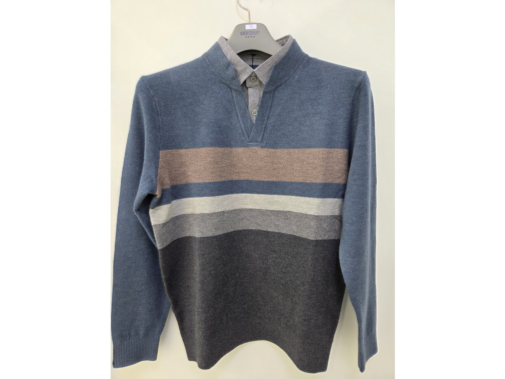 [행복한백화점][세르지오]레이어드 블루 니트티셔츠 sntvbid8559a >