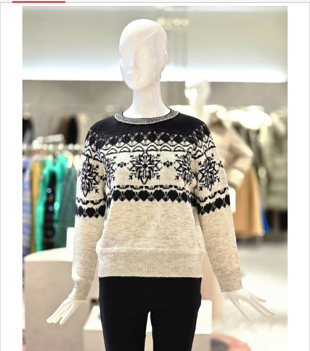 울혼방 니트,눈꽃프린팅패턴,니트,라운드티셔츠,영케주얼,일상룩,데일리룩,30대,40대