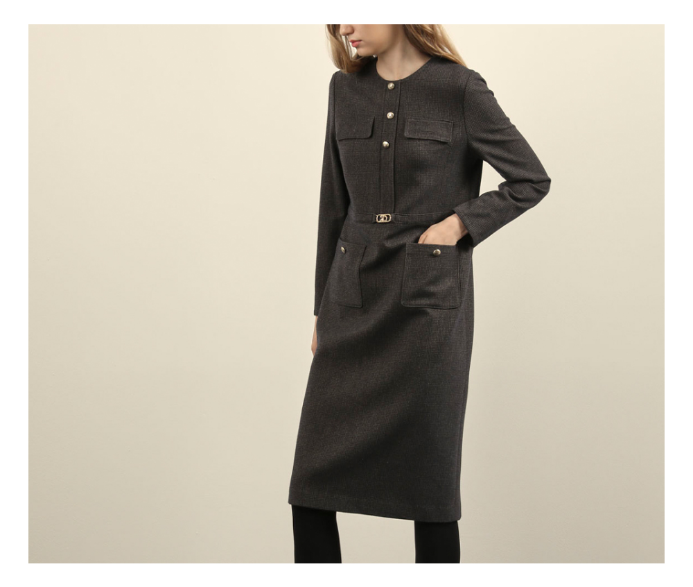 장식단추 포인트로 페미니한 무드를 주어 부드러운 컬러감의