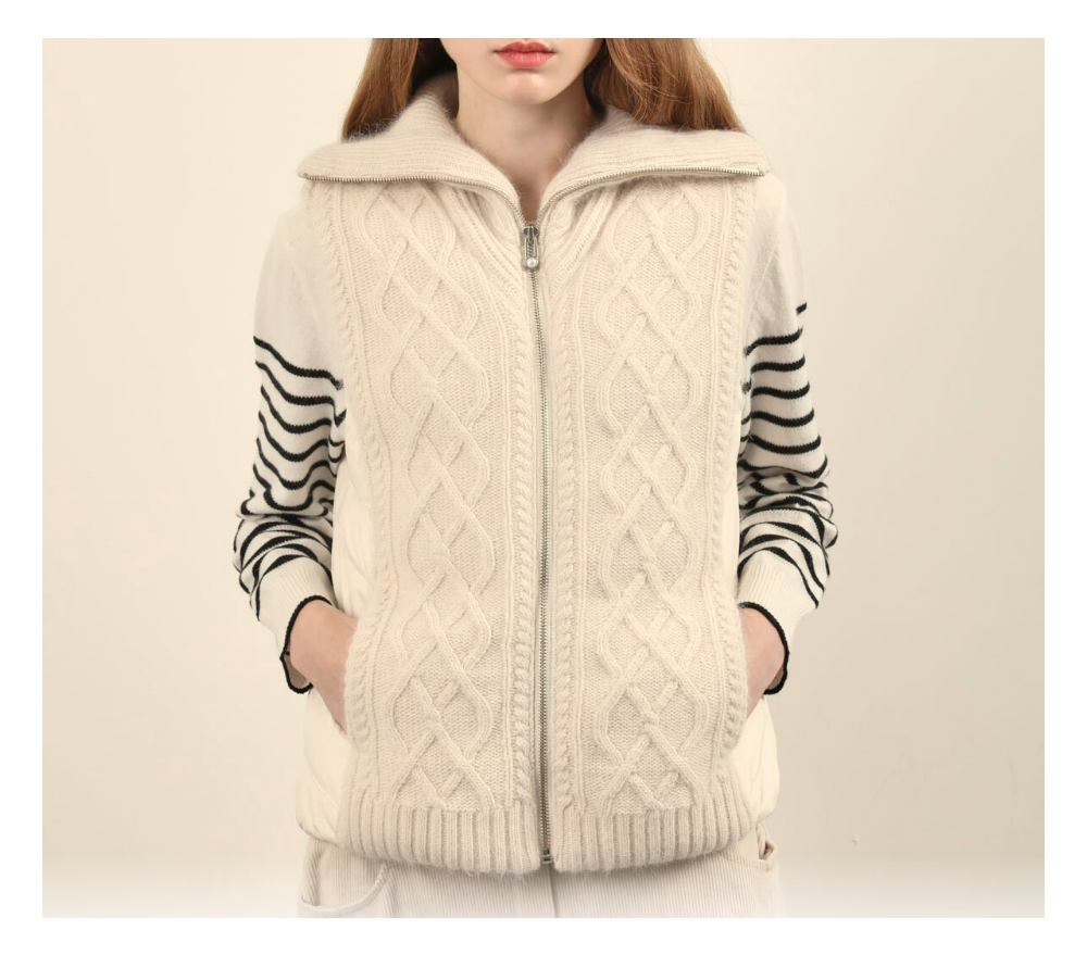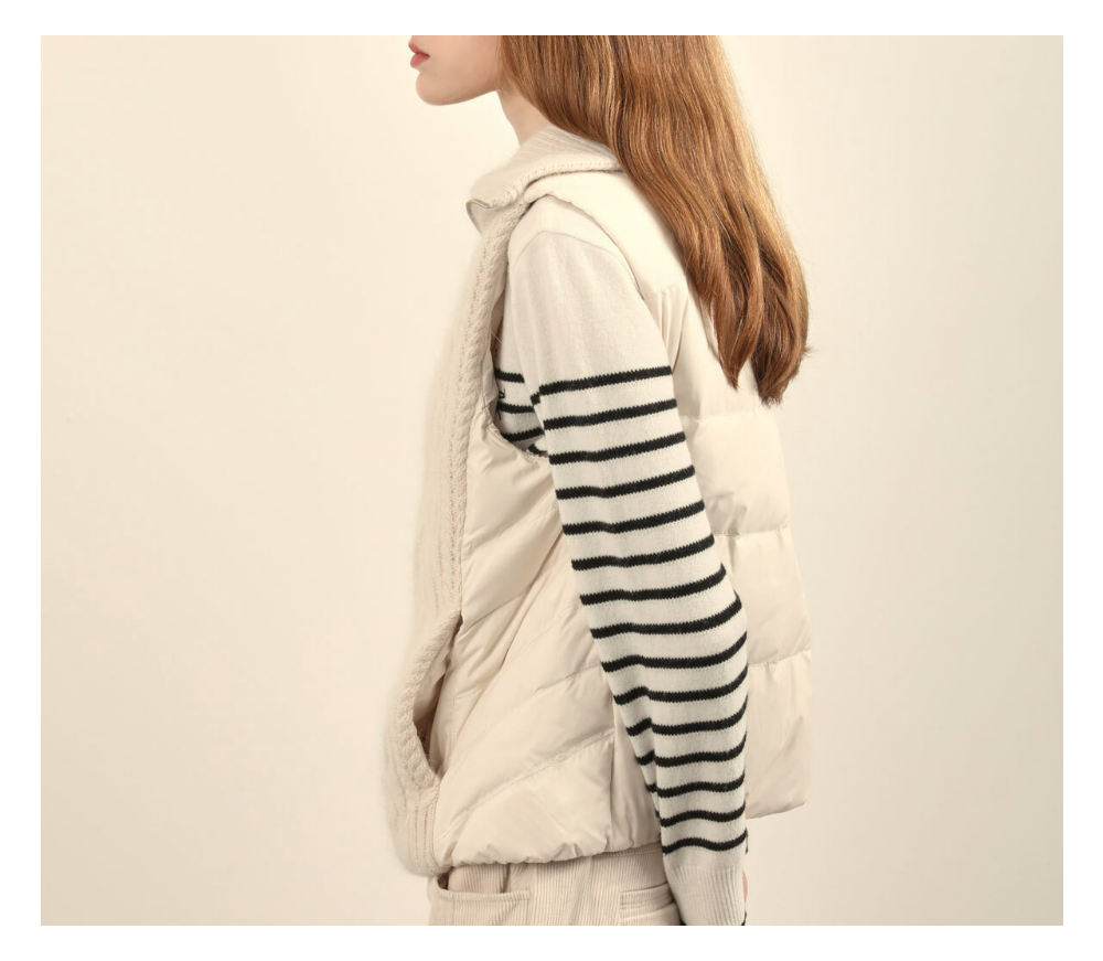 카라와 앞판이 니트로 되어있는 다운베스트 입니다
