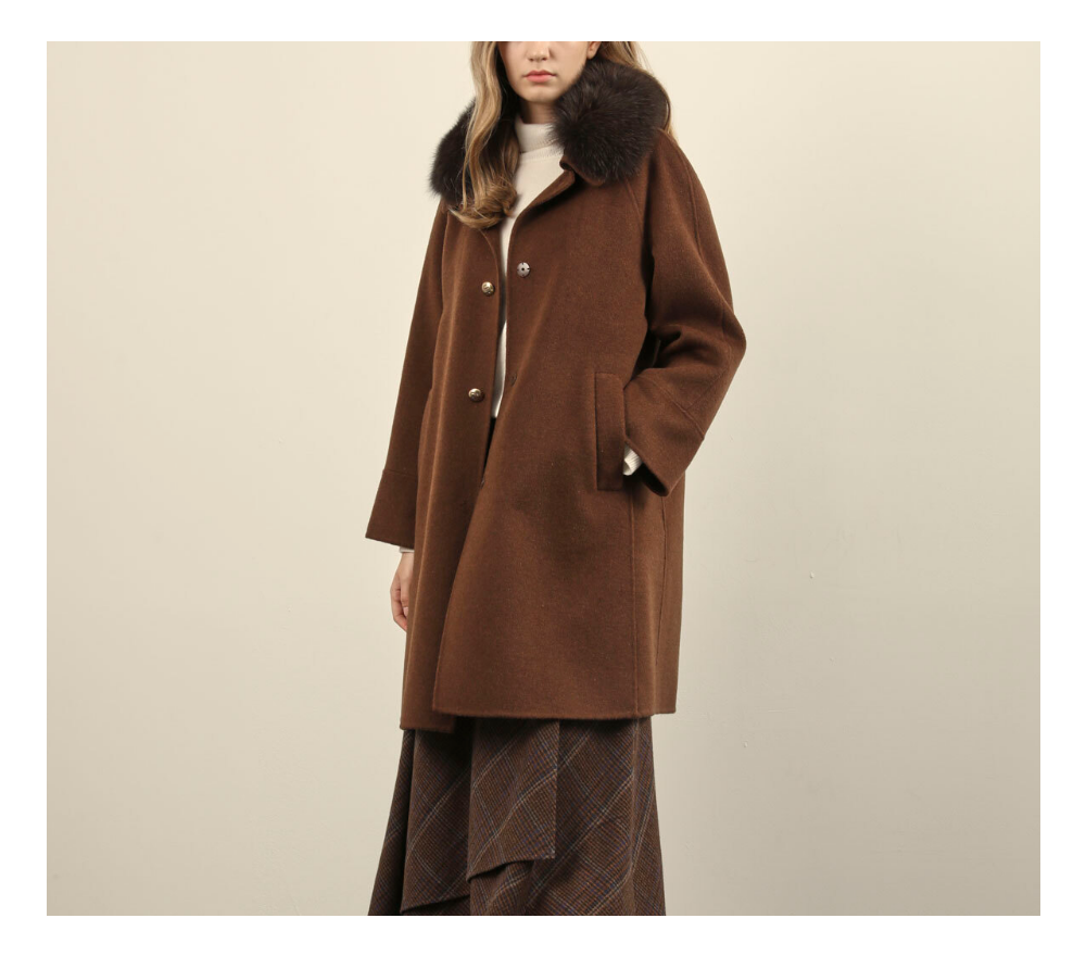 A라인으로 떨어지는 실루엣의 핸드메이드 코트 입니다