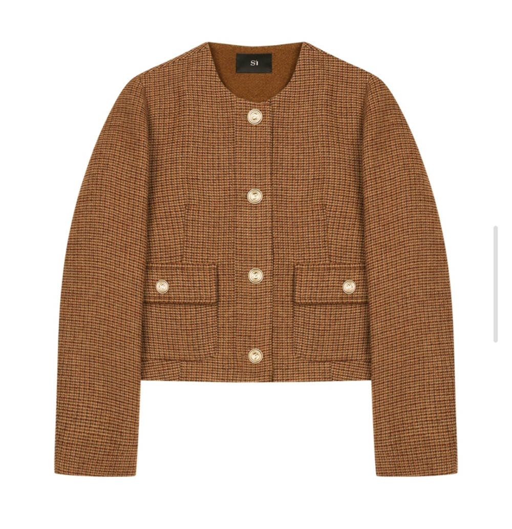 노카라자켓,크롭자켓,체크패턴,라운드자켓,영케주얼,여성정장,데일리룩,일상룩,30대,40대