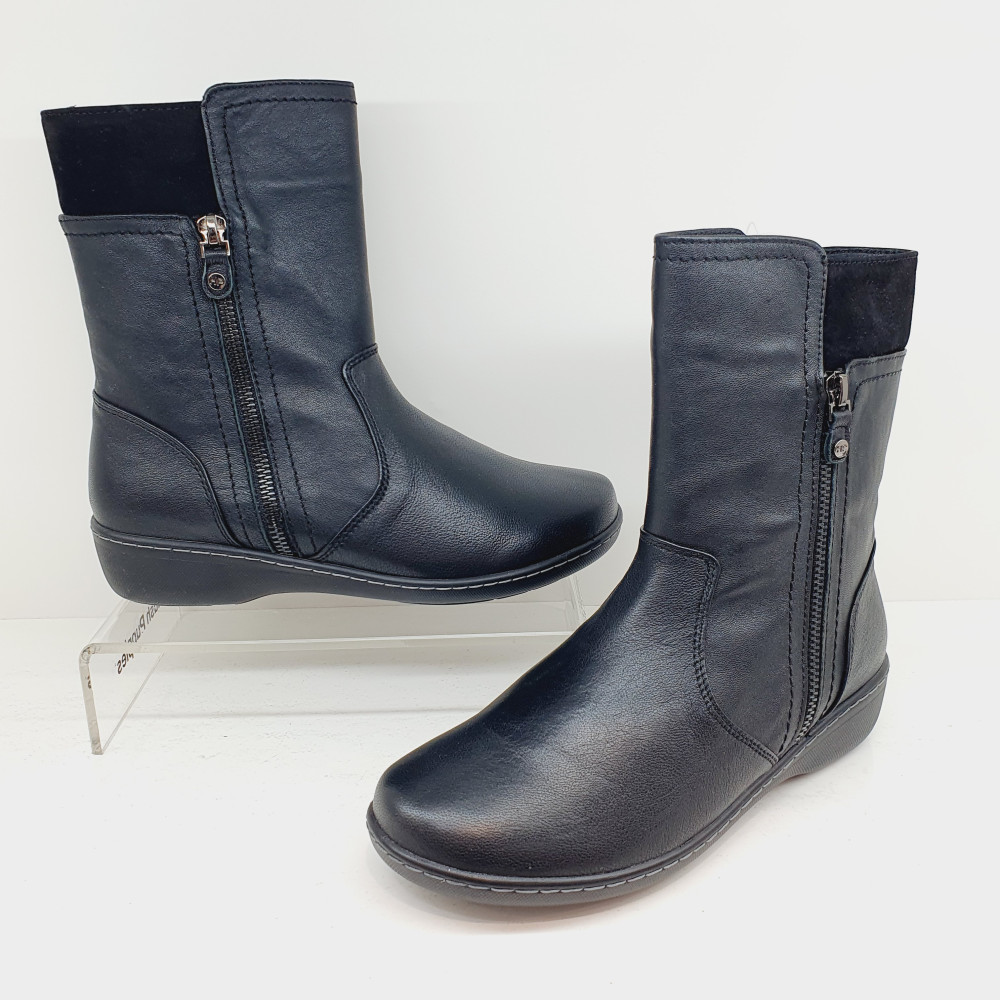 깔끔한 디자인이 다양한 복장에 잘 어울리는 하프 부츠입니다.