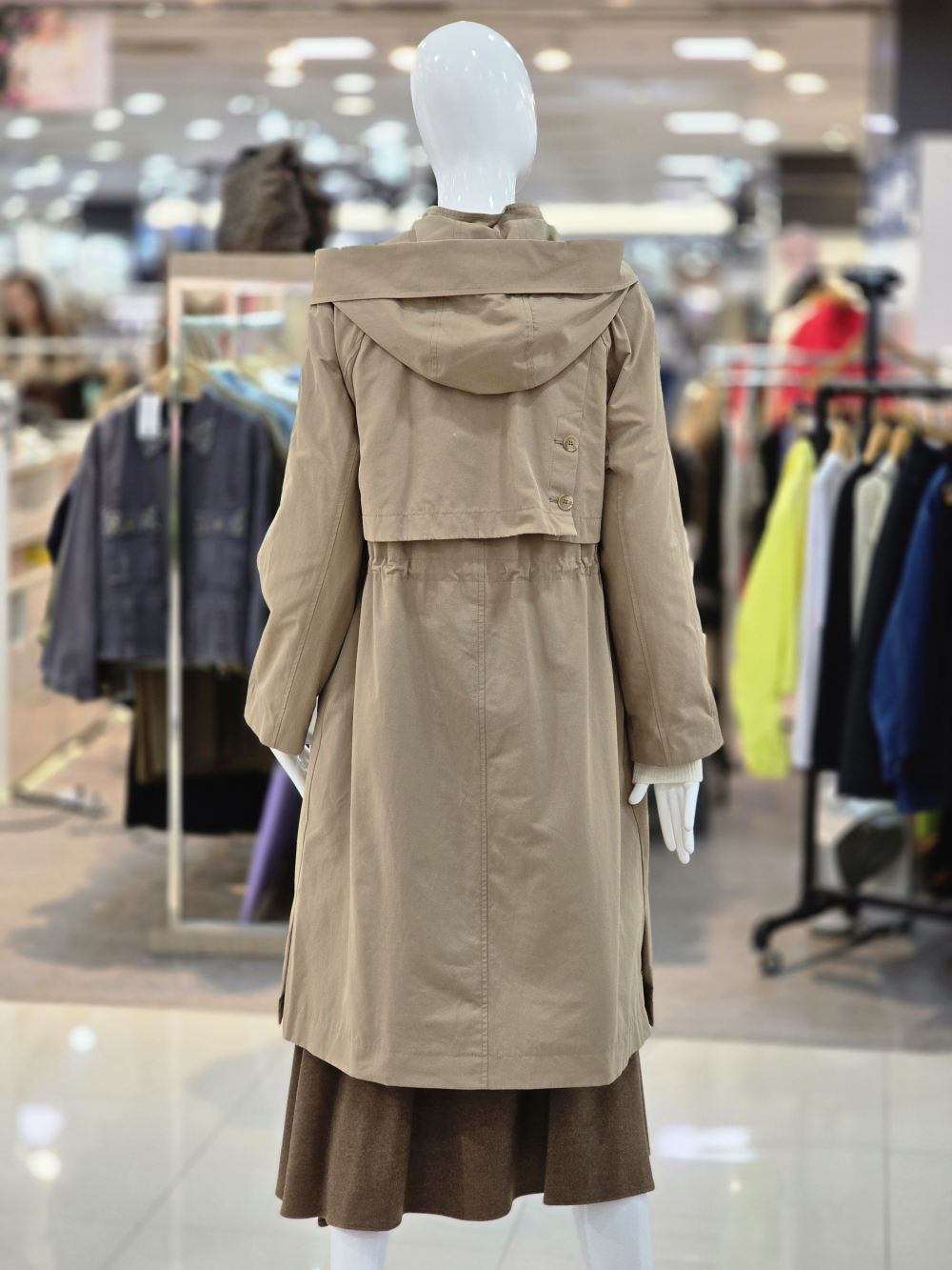 후드 디자인과 여유 있는 실루엣이 조화를 이루는 하프코트입니다.