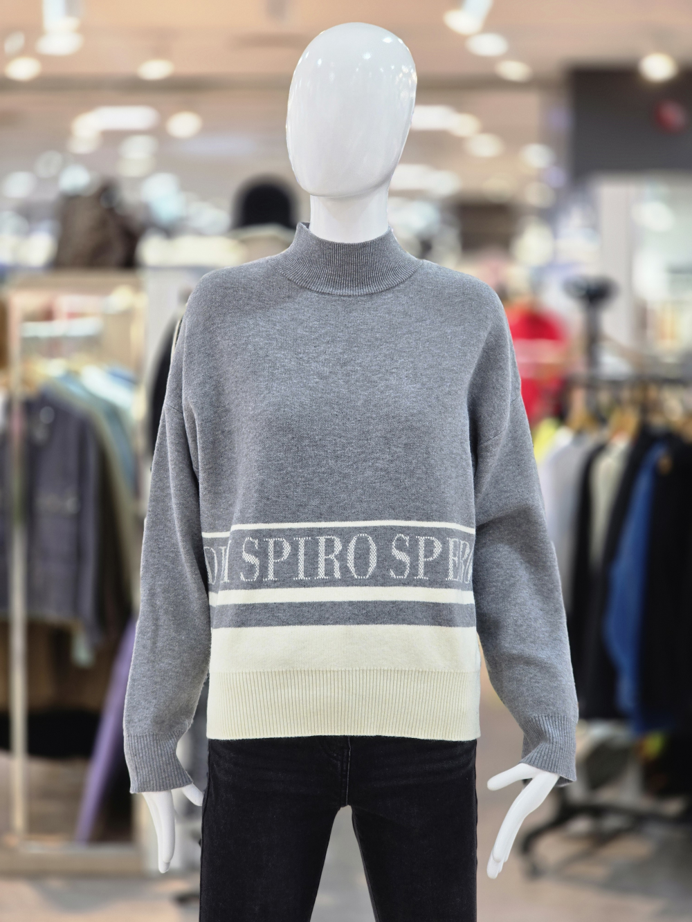 전면 레터링 디테일로 포인트를 준 하프넥 니트입니다.