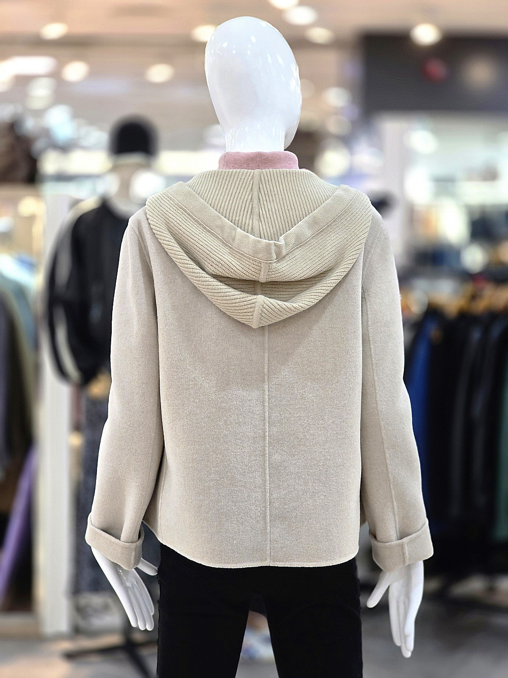 깔끔한 실루엣과 후드 디테일이 조화된 하프 기장의 자켓입니다.