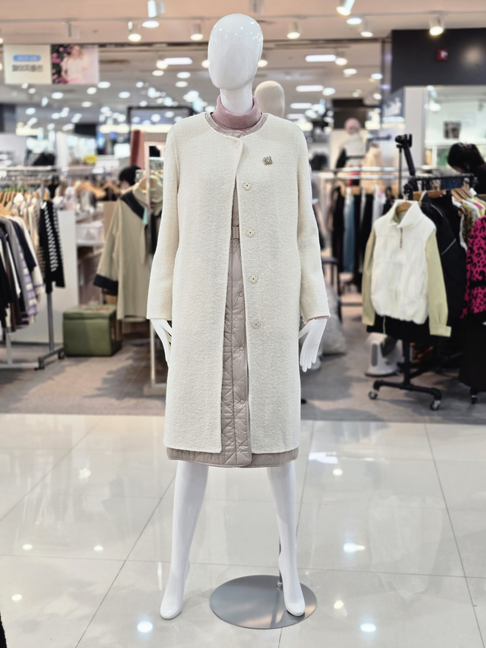 미니멀한 버튼 라인과 세련된 브로치 포인트가 더해져 고급스러운 무드를 완성합니다.