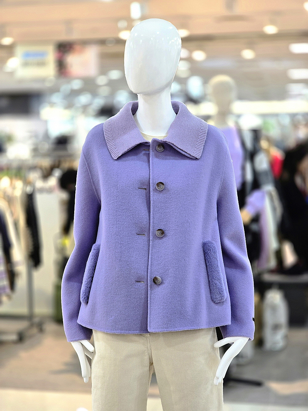 카라와 포켓 부분에 니트 배색 디테일이 더해져 캐주얼하면서도 세련된 인상을 줍니다.