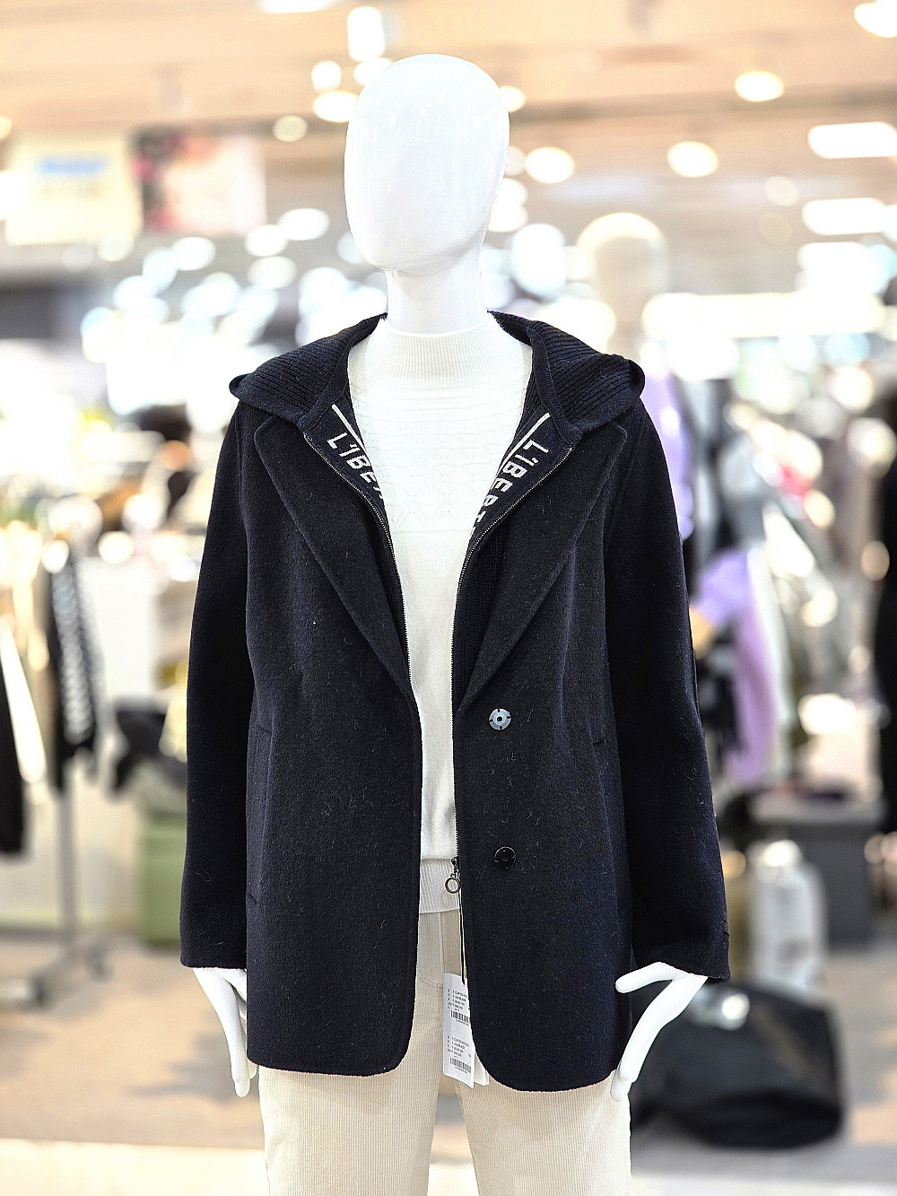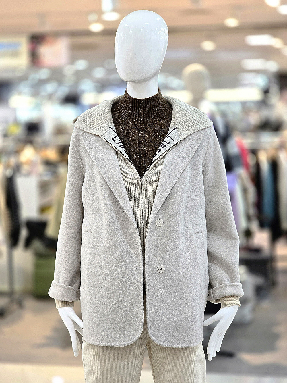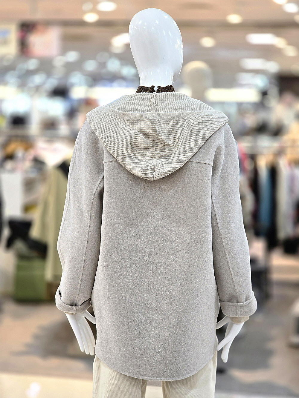 후드와 안감에는 니트 조직 배색을 더해 부드러운 착용감과 포근한 무드를 동시에 제공합니다.