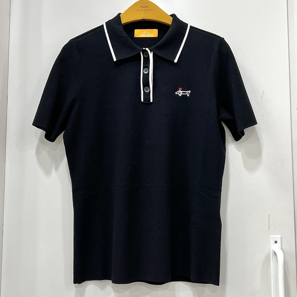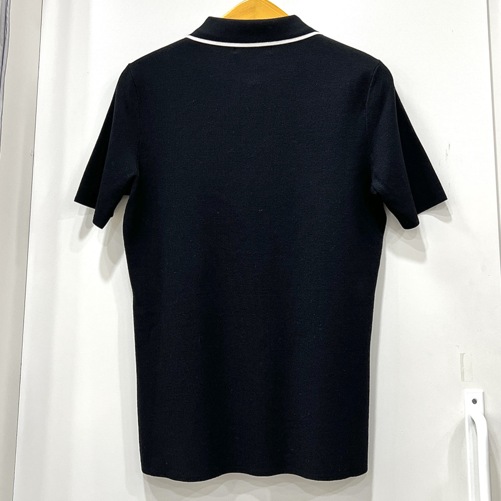 [행복한백화점][루이까스텔]배색 포인트 솔리드 반팔 카라 스웨터 블랙 여성 7LESW902