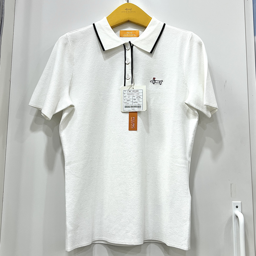 [행복한백화점][루이까스텔]배색 포인트 솔리드 반팔 카라 스웨터 아이보리 여성 7LESW902