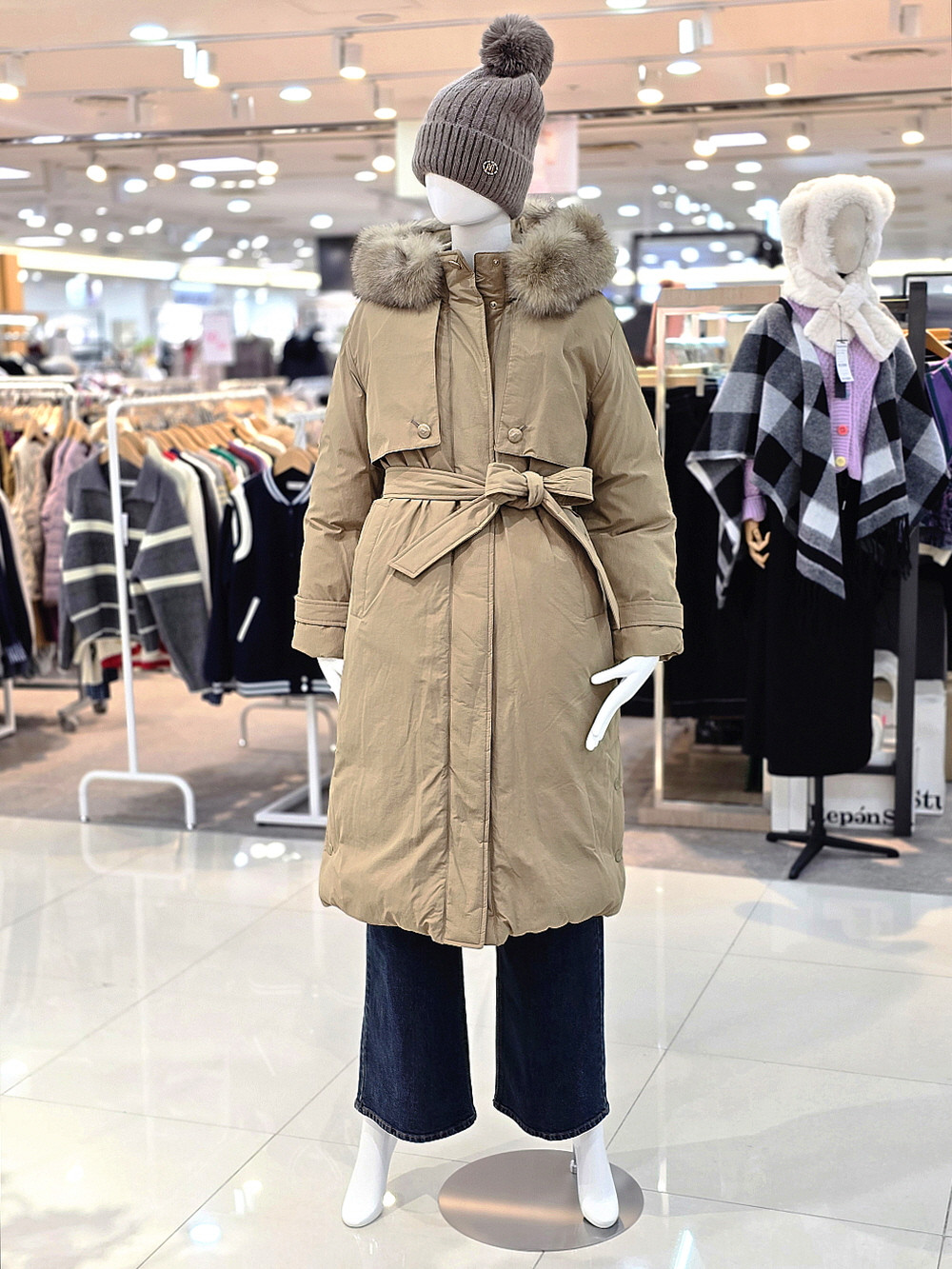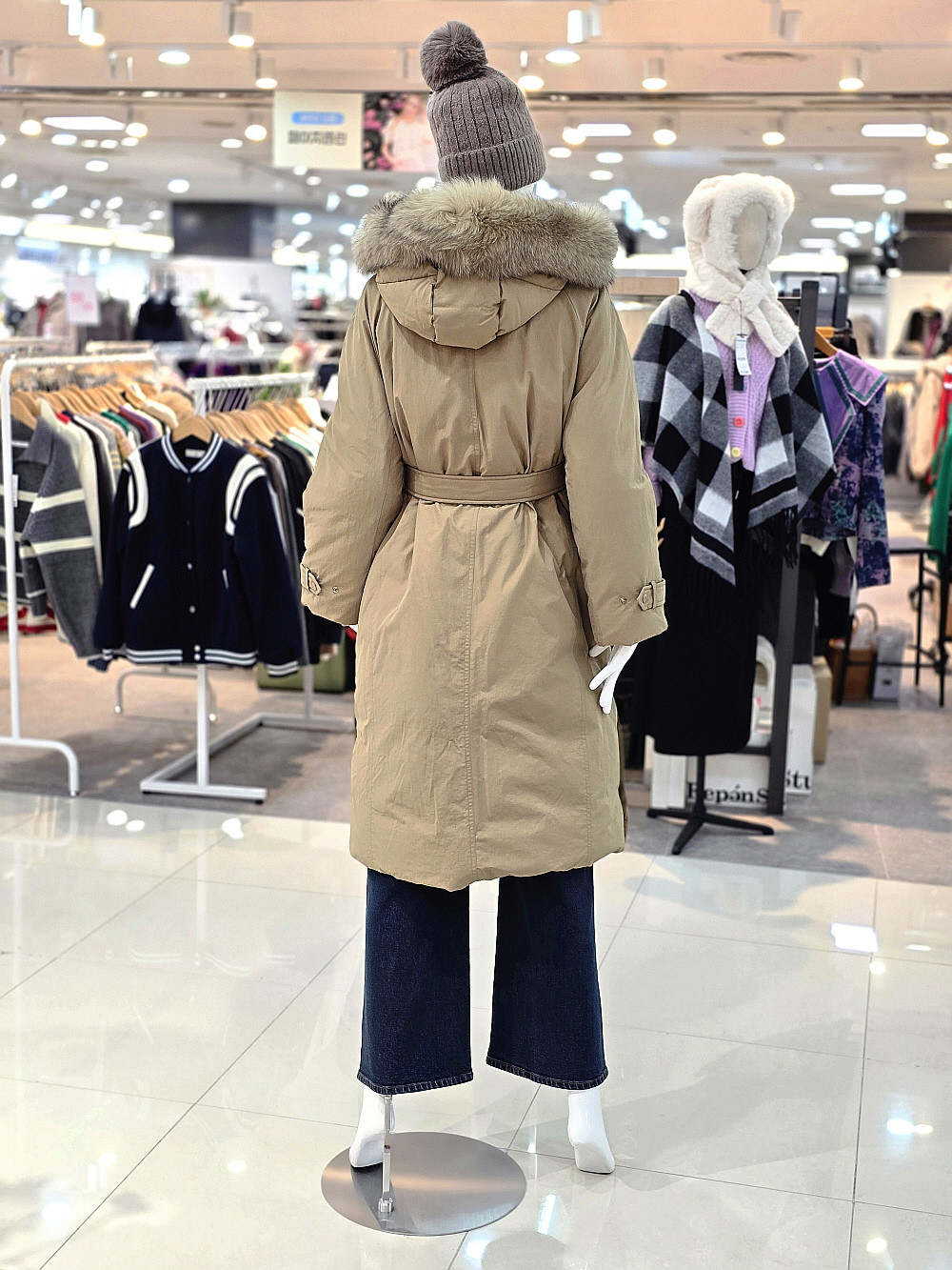 풍성한 폭스퍼 트리밍과 허리 스트랩으로 여성스러운 실루엣을 완성합니다.