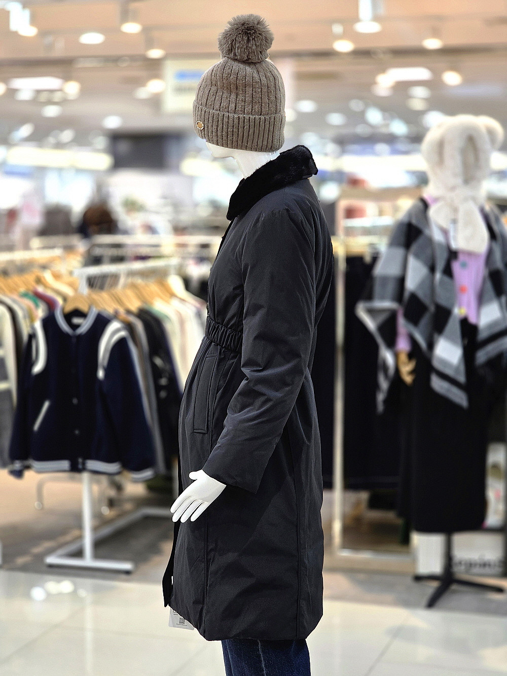 밍크퍼 카라 디테일로 고급스러운 분위기를 더합니다.