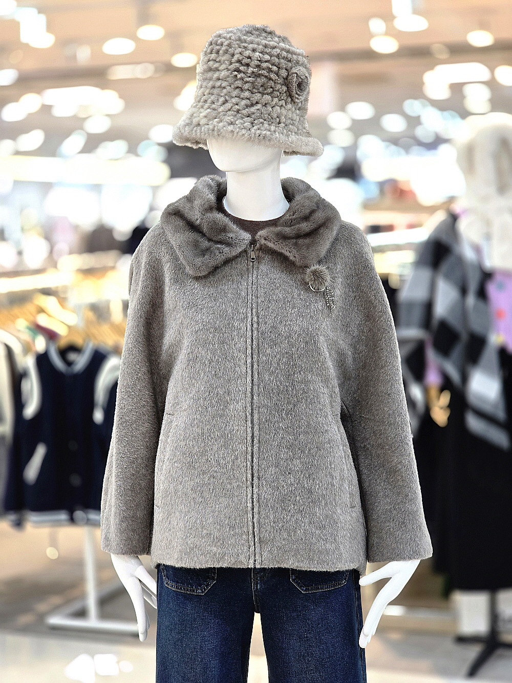 알파카 혼방 소재로 가볍고 뛰어난 보온성을 제공합니다.
