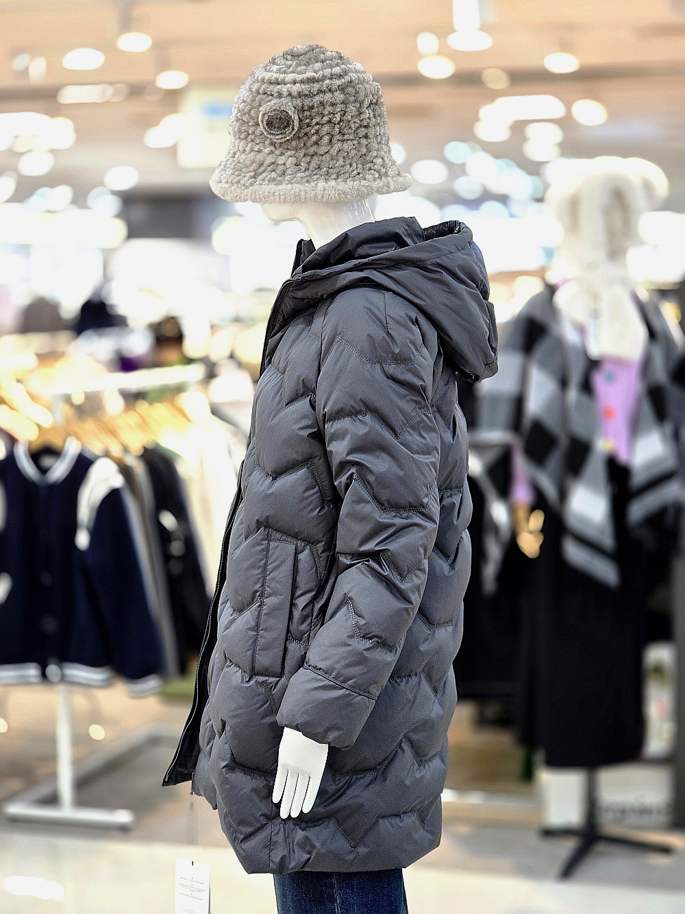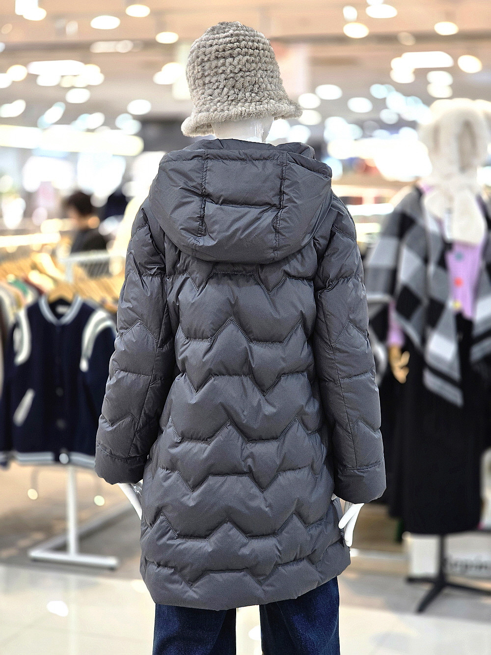 퀼팅 라인과 후드 디자인으로 캐주얼한 무드를 살렸습니다.