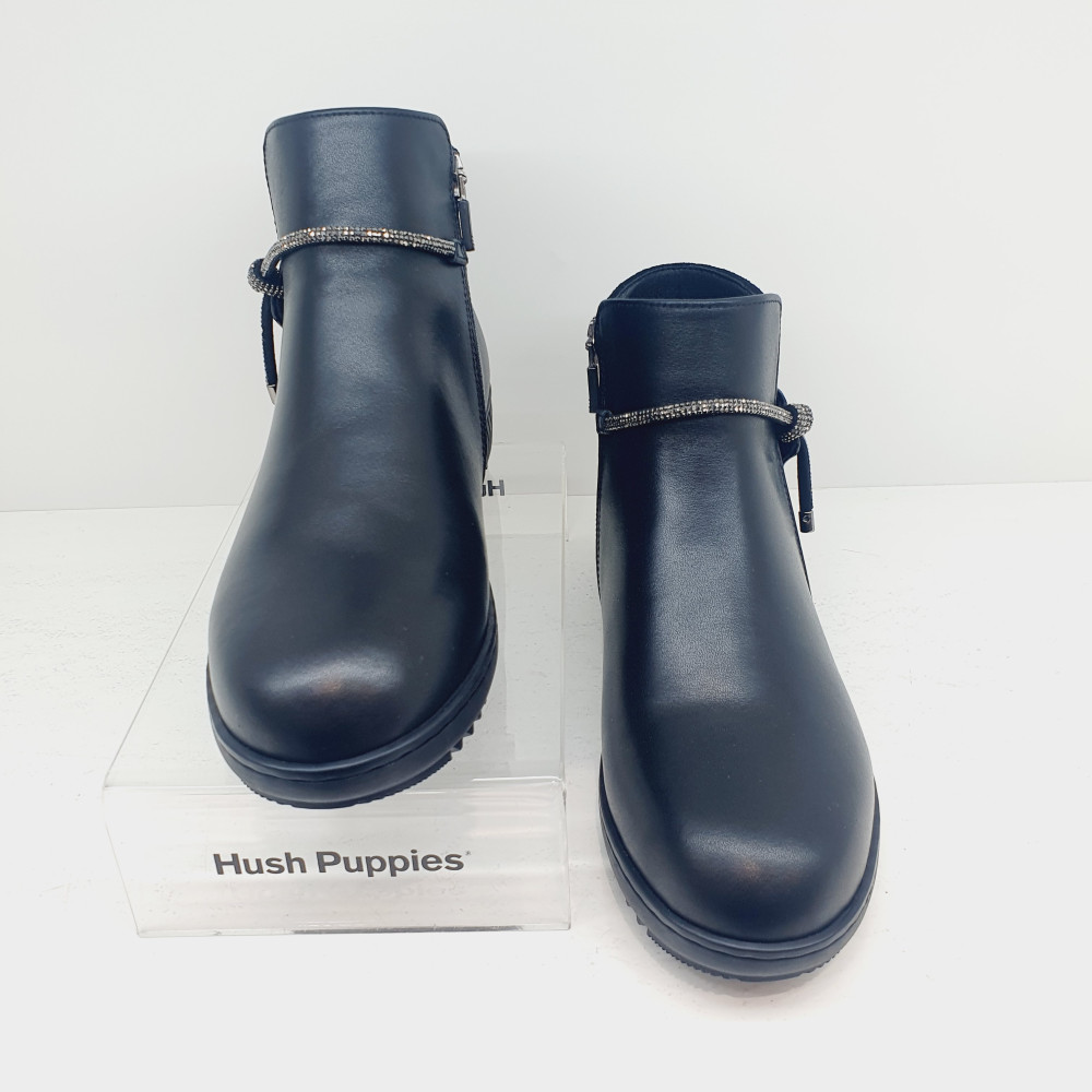 크리스탈 스트랩이 포인트인 포멀한 플랫 앵클부츠로