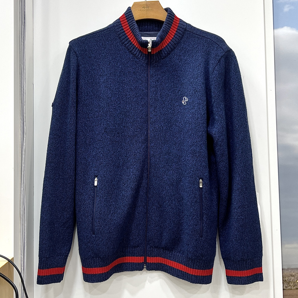 [행복한백화점][루이까스텔]배색 라인 방풍 풀 집업 울 스웨터 네이비 남성 7MESW001