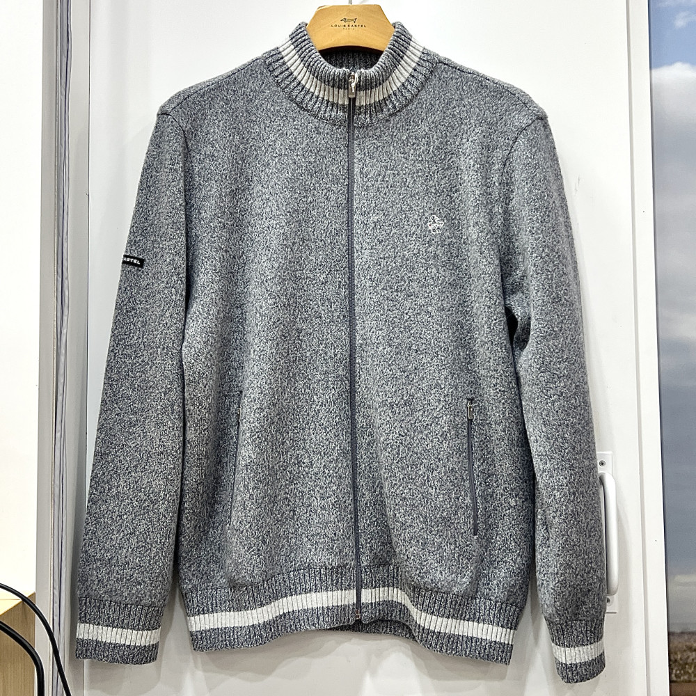 [행복한백화점][루이까스텔]배색 라인 방풍 풀 집업 울 스웨터 라이트그레이 남성 7MESW001