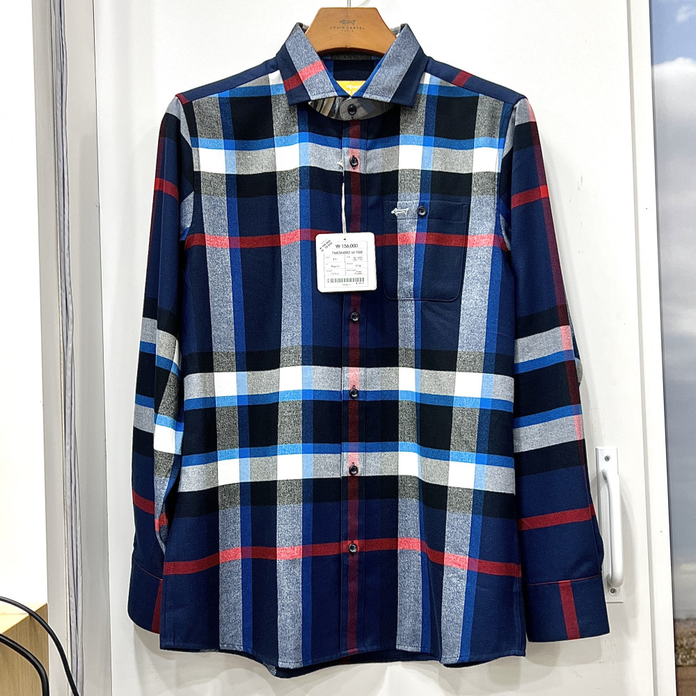 [행복한백화점][루이까스텔]빅체크 라운드 가슴포켓 셔츠 다크블루 남성 7MESH002