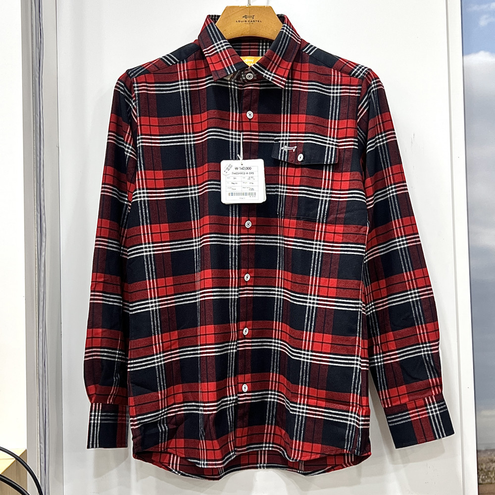 [행복한백화점][루이까스텔]체크 후다 라운드 가슴포켓 셔츠 레드 남성 7MESH902