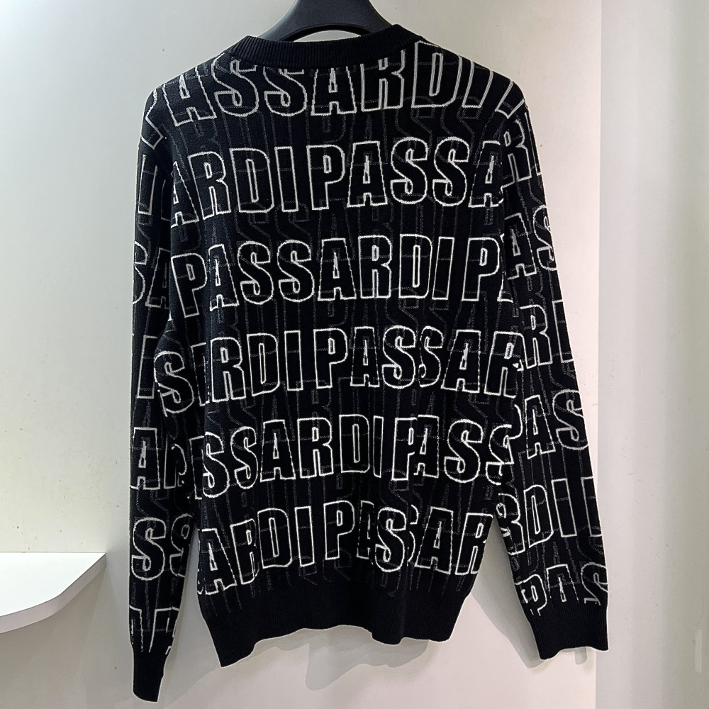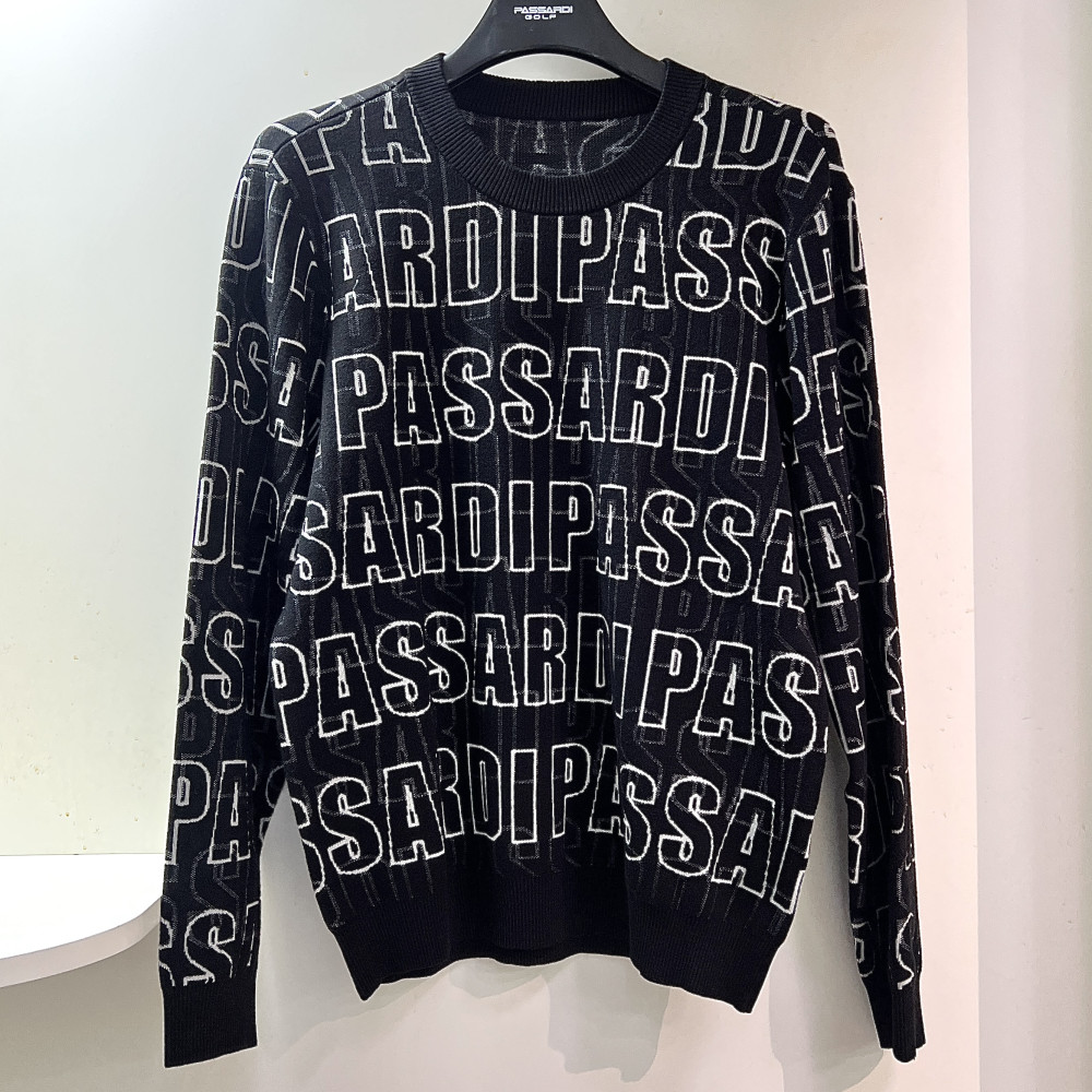 [행복한백화점][파사디]전체 로고 자카드 라운드 니트 블랙 남성 Q24FKP213M
