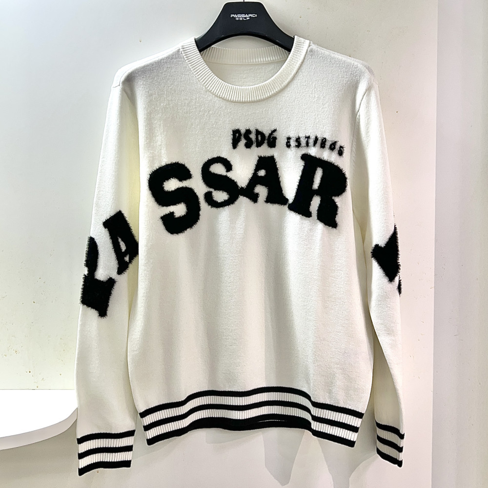 [행복한백화점][파사디]로고 날개사 배색 라운드 니트 오프화이트 남성 Q24FKP216M >