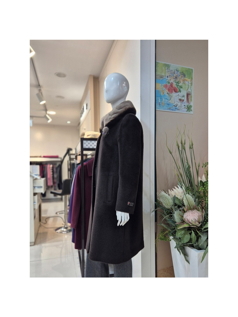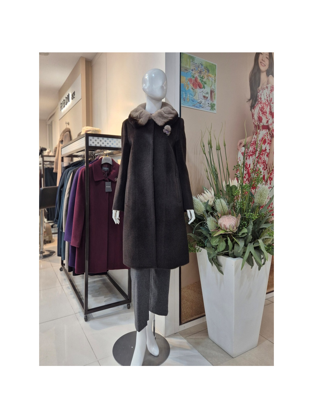 리본,여성,롱코트,밍크트리밍,수리알파카,정장코트