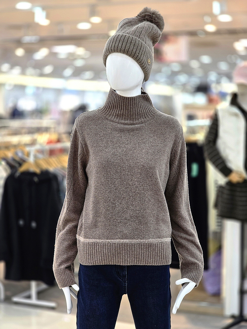 터틀넥 디자인으로 보온성과 착용 안정감을 높인 니트입니다.