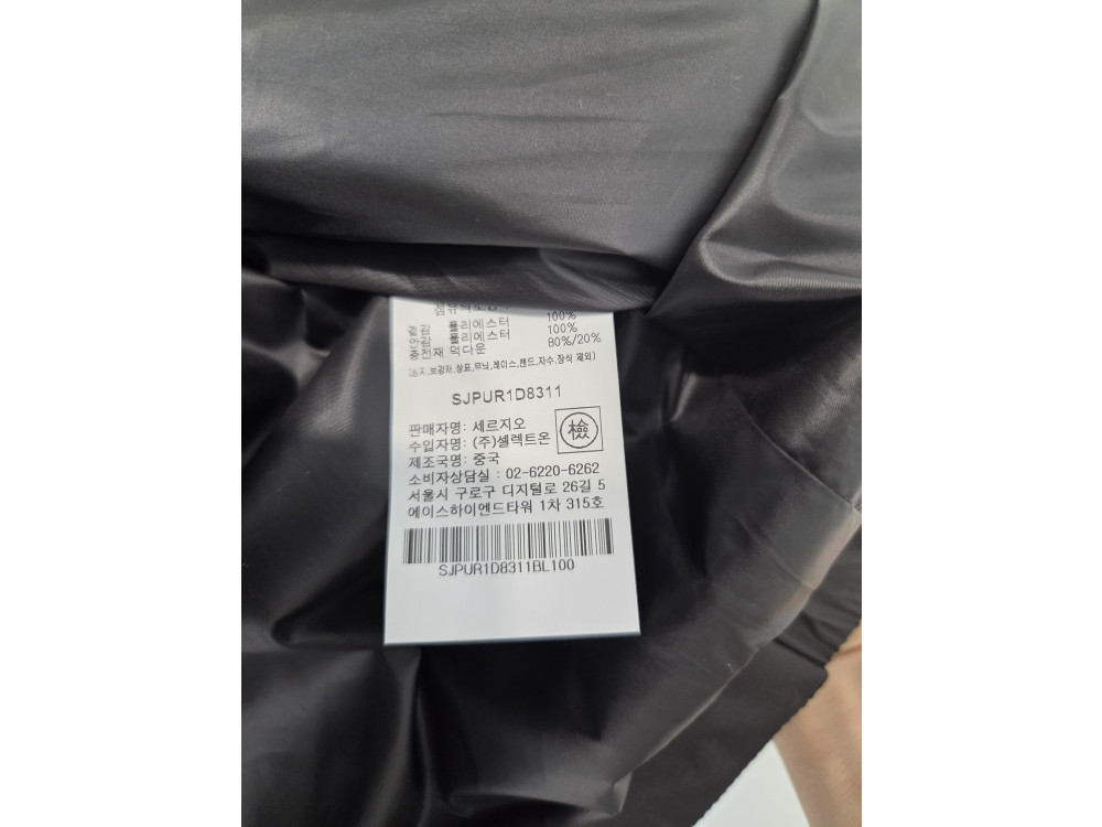 [행복한백화점][세르지오] 구스 블랙 점퍼 SJPUR1D8311B