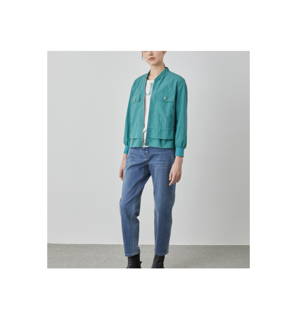 목을 부드럽게 감싸는 쭈글이자수 디테일의 차이나카라 디자인이며 여유로운