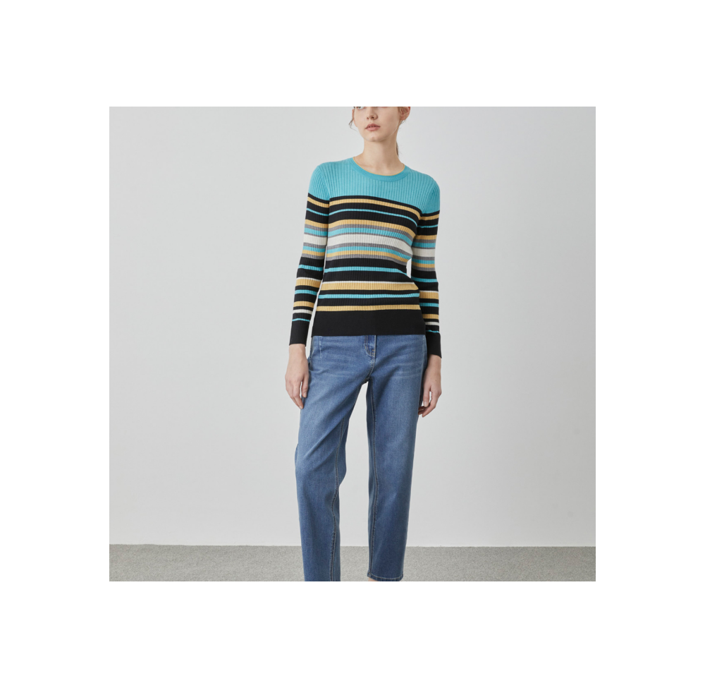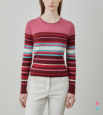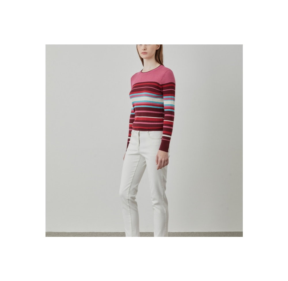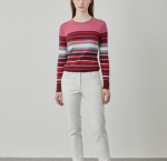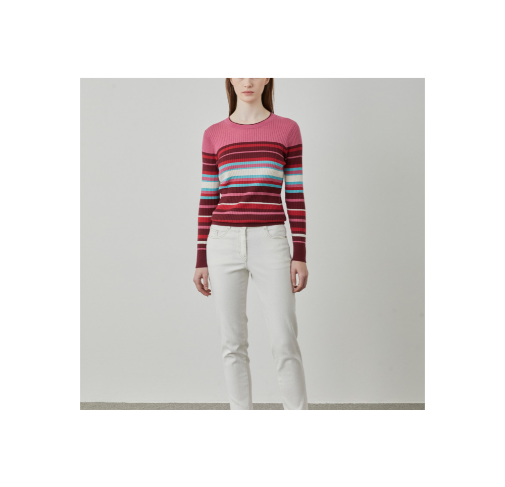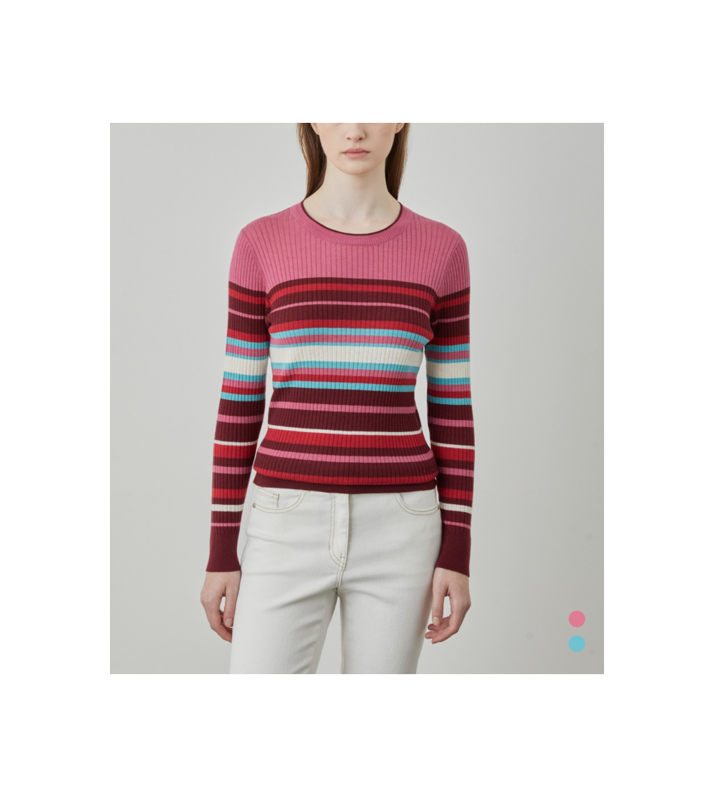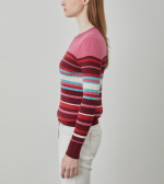 5가지 컬러가 믹스된 멀티스트라이프 라운드넥 니트 풀오버 입니다