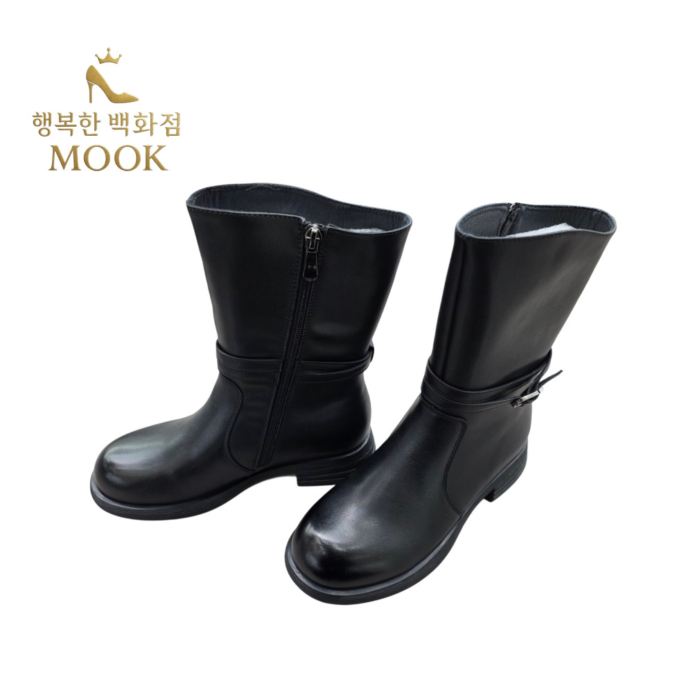 [행복한백화점][무크]mook 여성 천연가죽 미들 버클 스트랩 부츠 블랙 516HB522763AA >