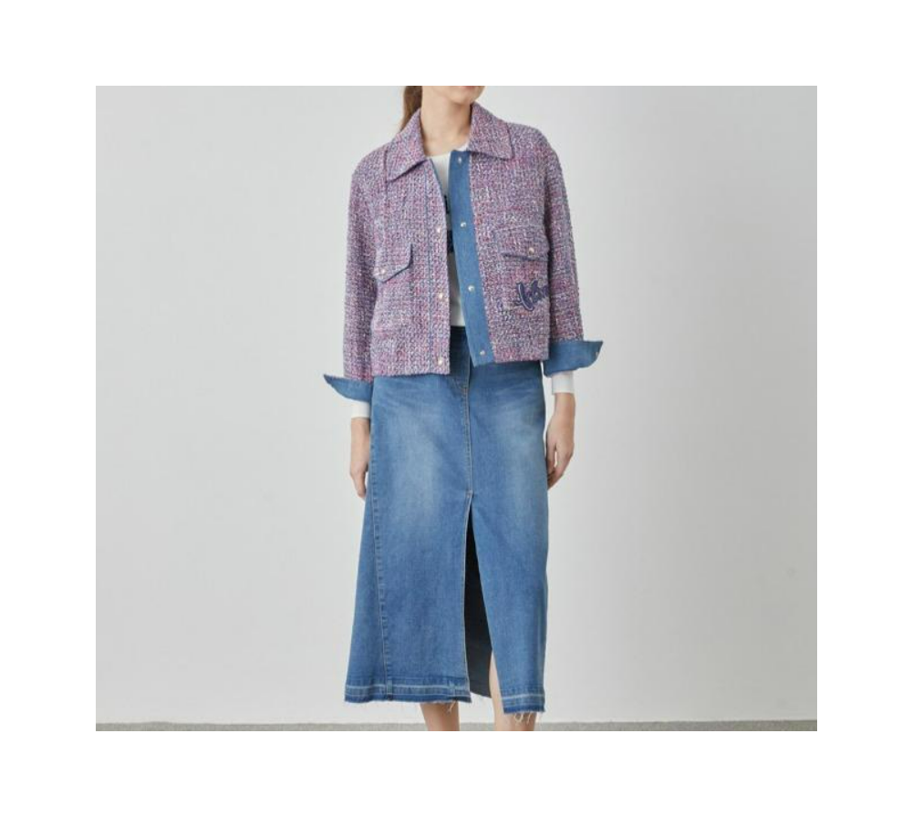트렌디한 트위드자켓으로 배색으로는 데님 라이크오 케주얼하게 풀어낸 자켓입니다