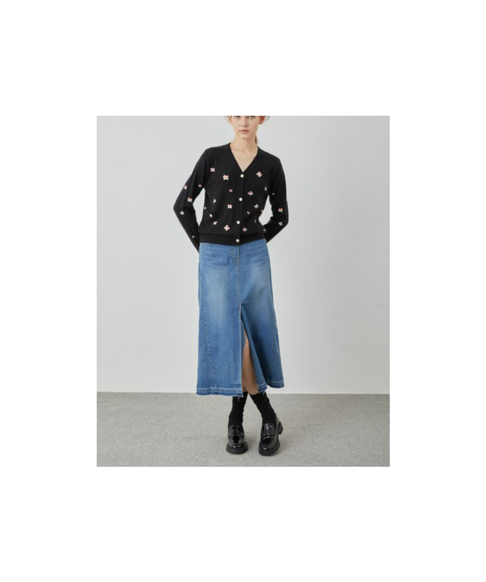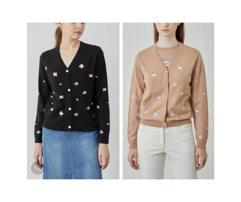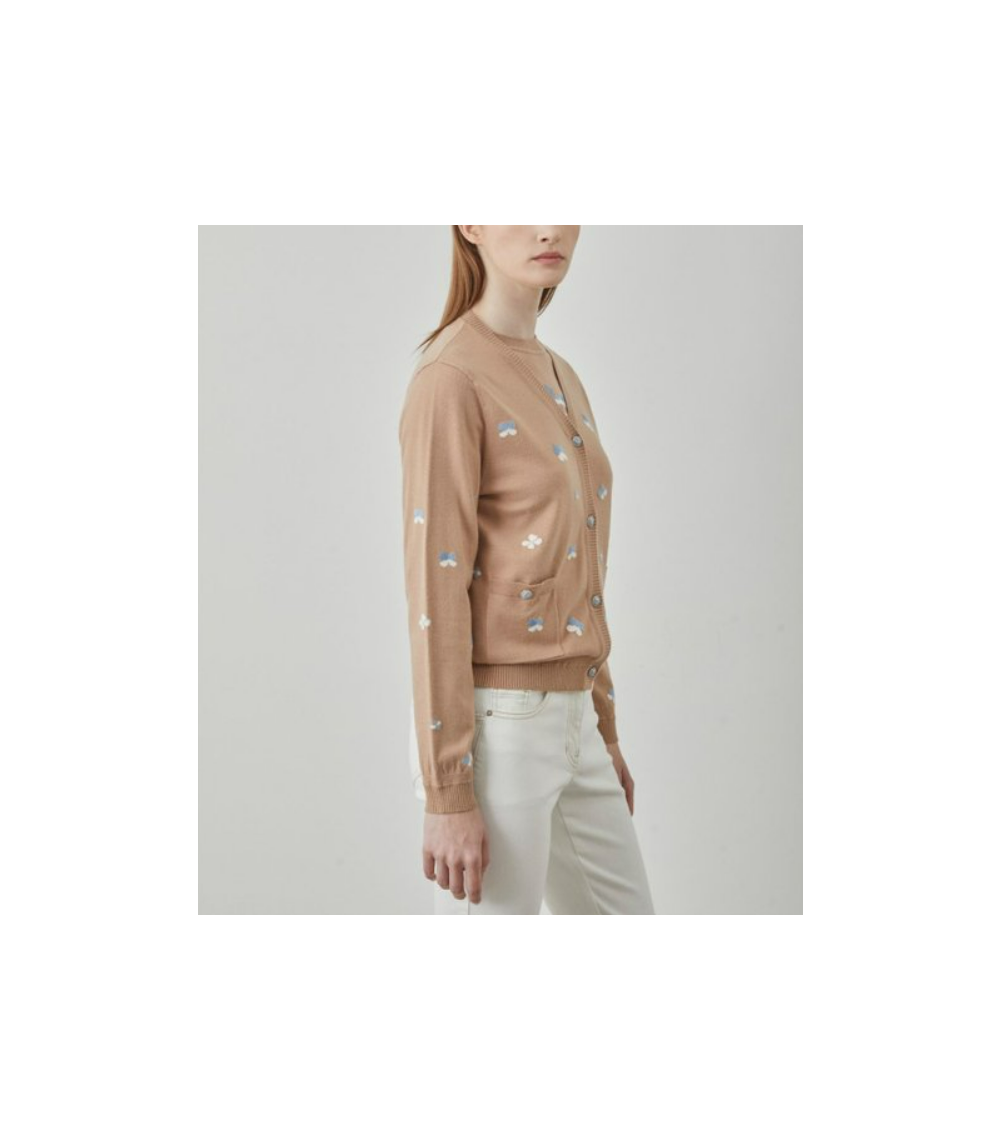 페미닌한 모티브가 있는 기본핏의 브이넥 안타르시아 가디건 입니다
