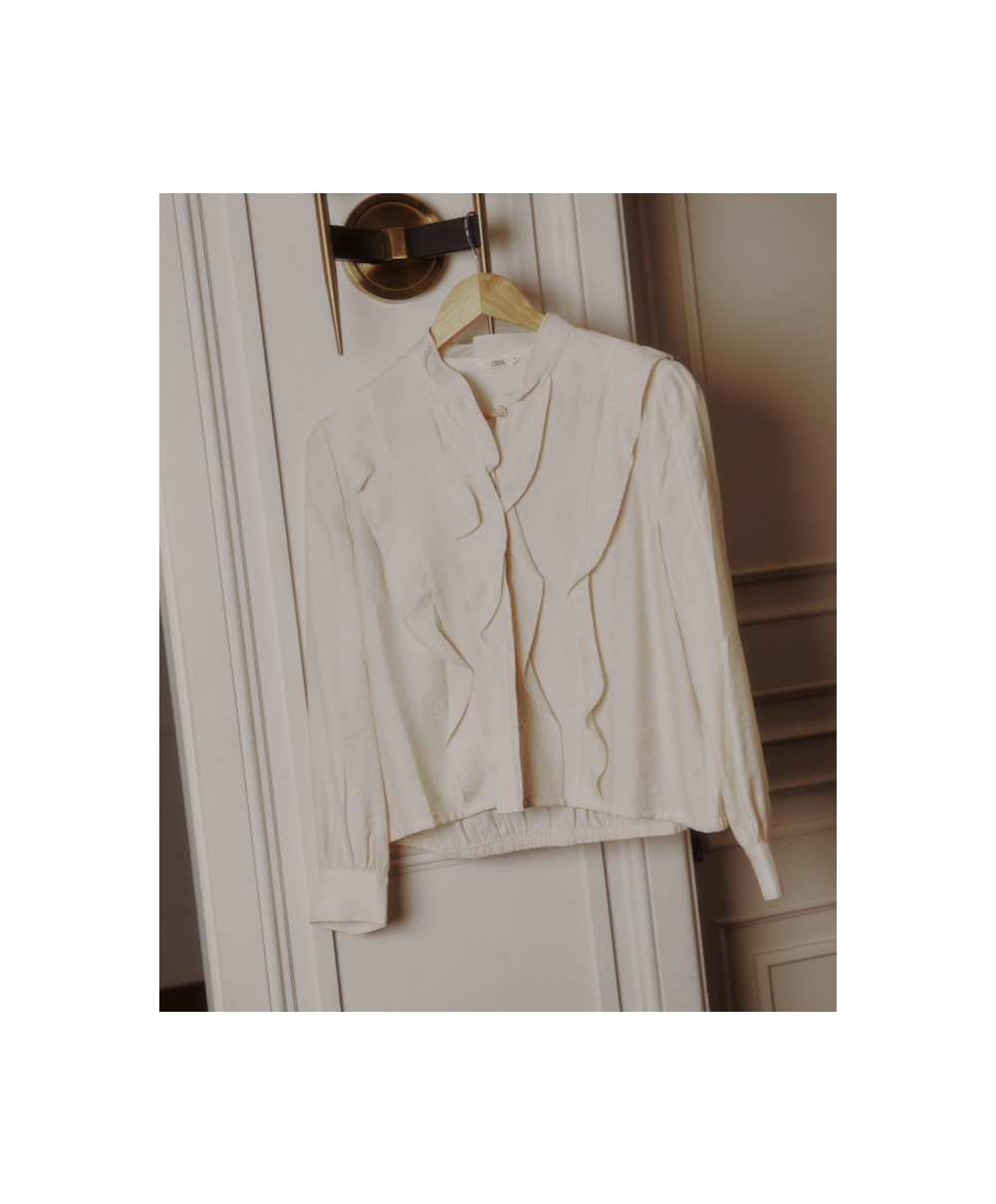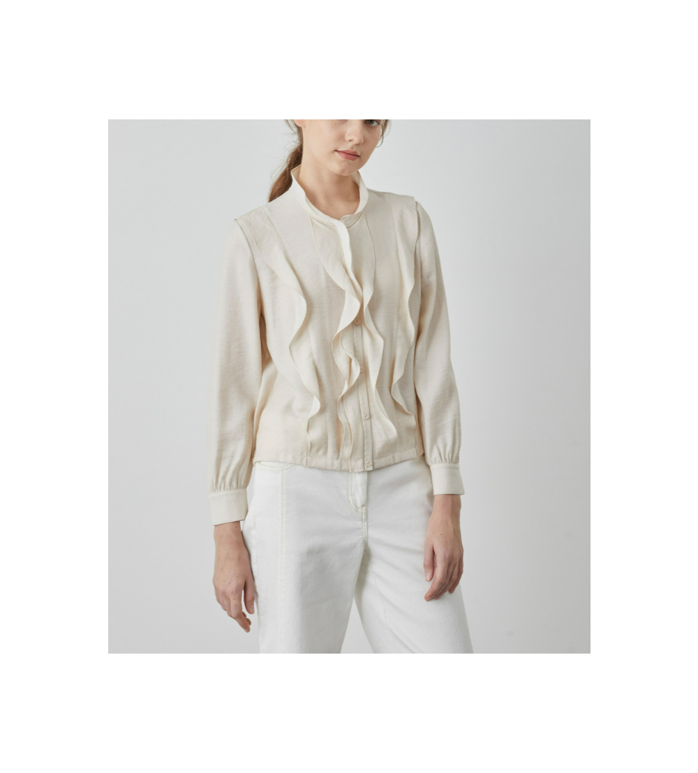 라운드넥에 브루종 실루엣의 크랍 블라우스 입니다
