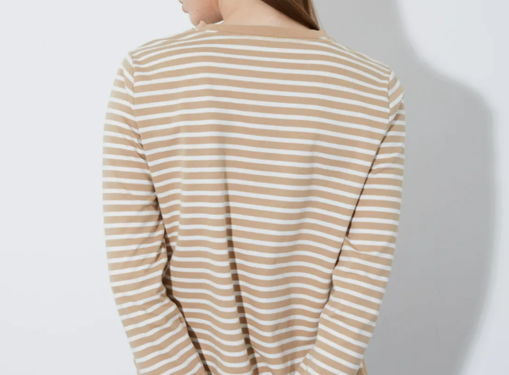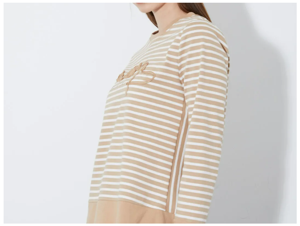 여유있는 A라인 훌지는 스타일의 스트라이프 티셔츠 입니다