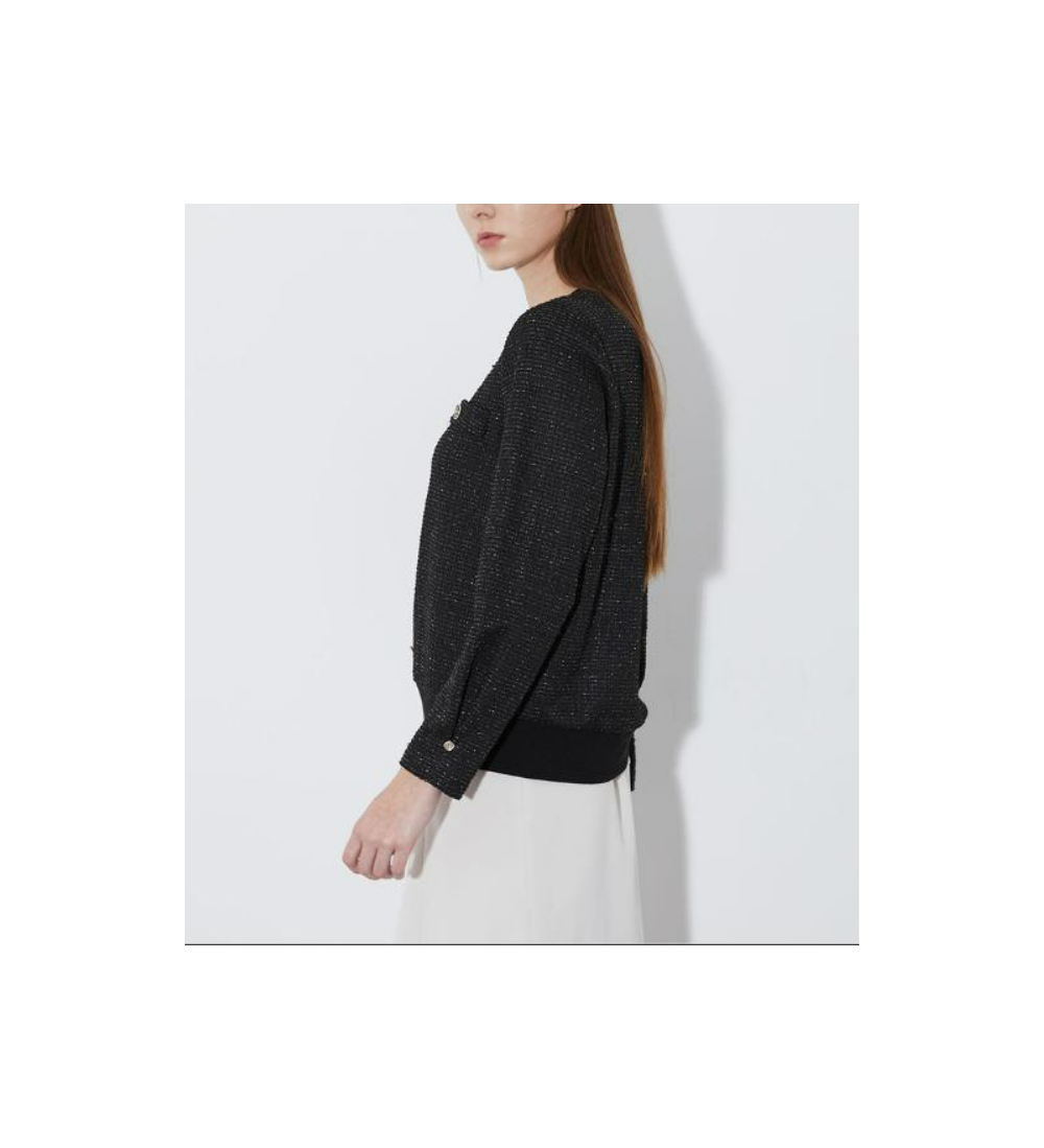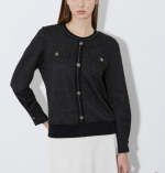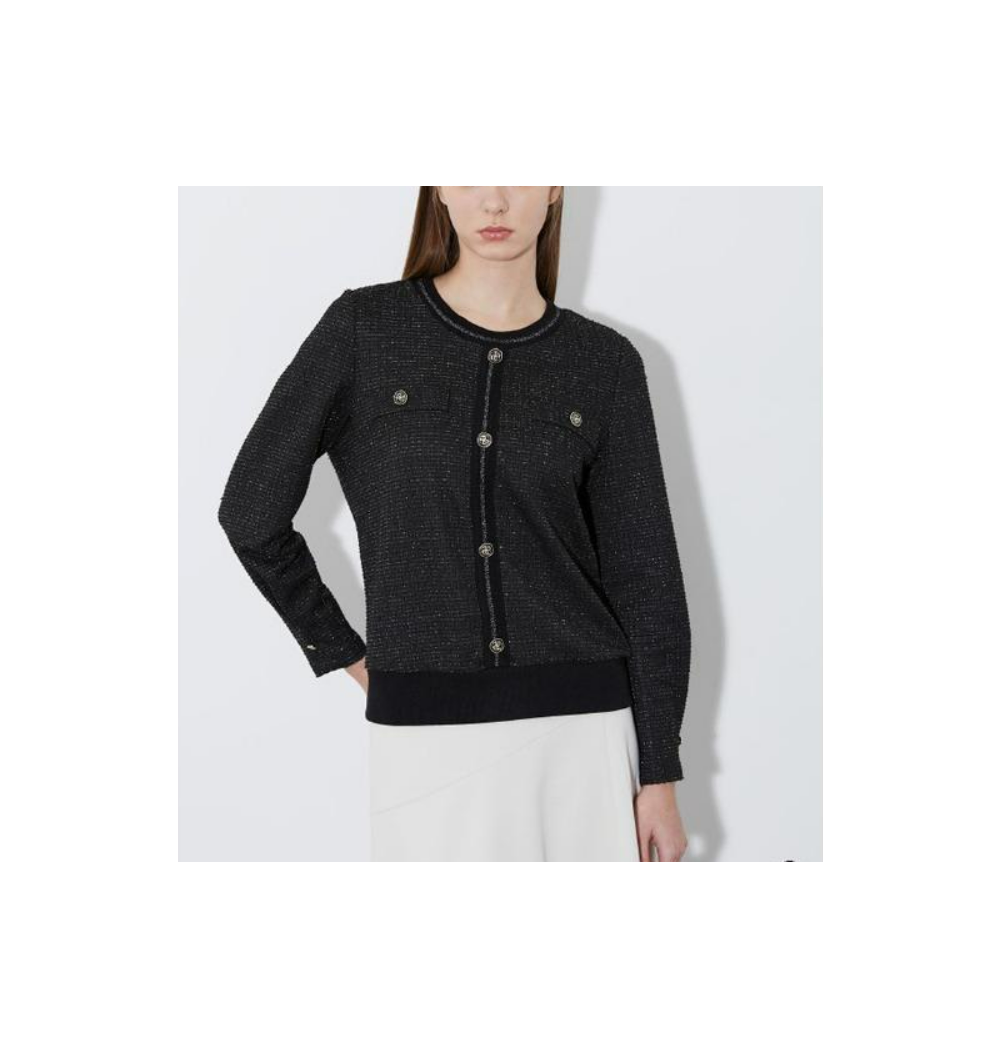 앞판에 부속과 장식단추로 가디건 형태를 갗춘 티셔츠 입니다