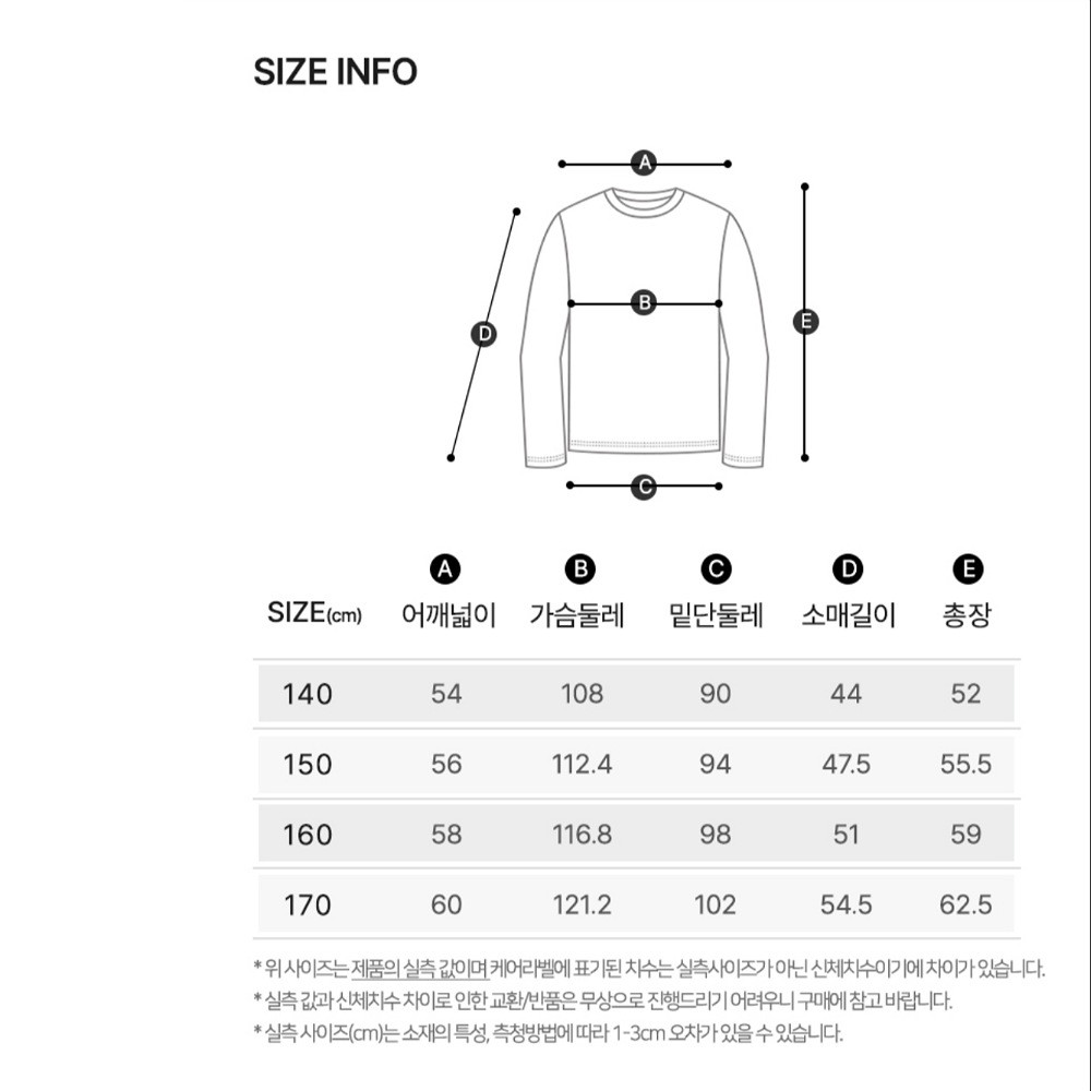 13호(150)사이즈는 신장 약150~155cm 몸무게 약40~45kg를 기준으로 체형에따라 달라질 수 있어요