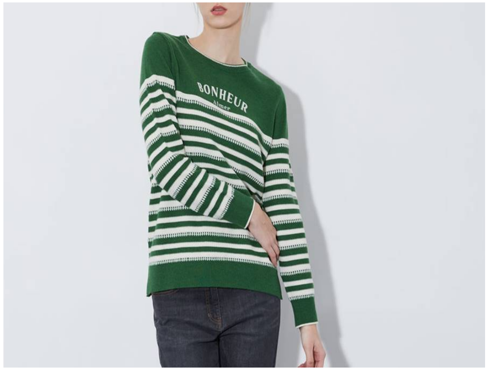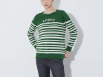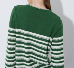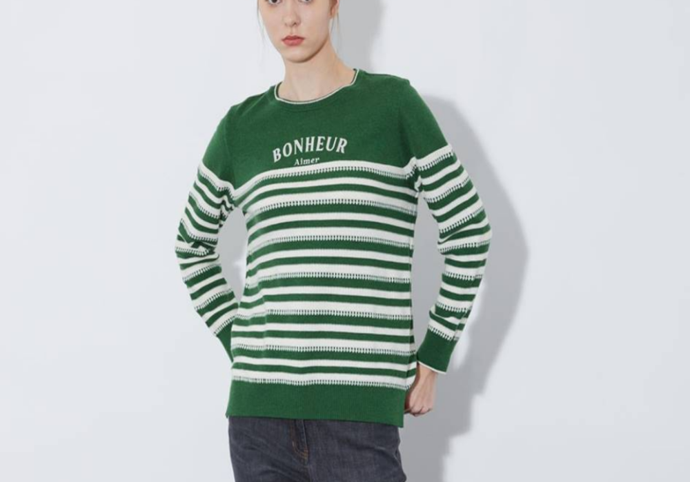 스트라이프에 앞판 자수가 패치된 케주얼한 스라일의 라운드 니트 탑입니다