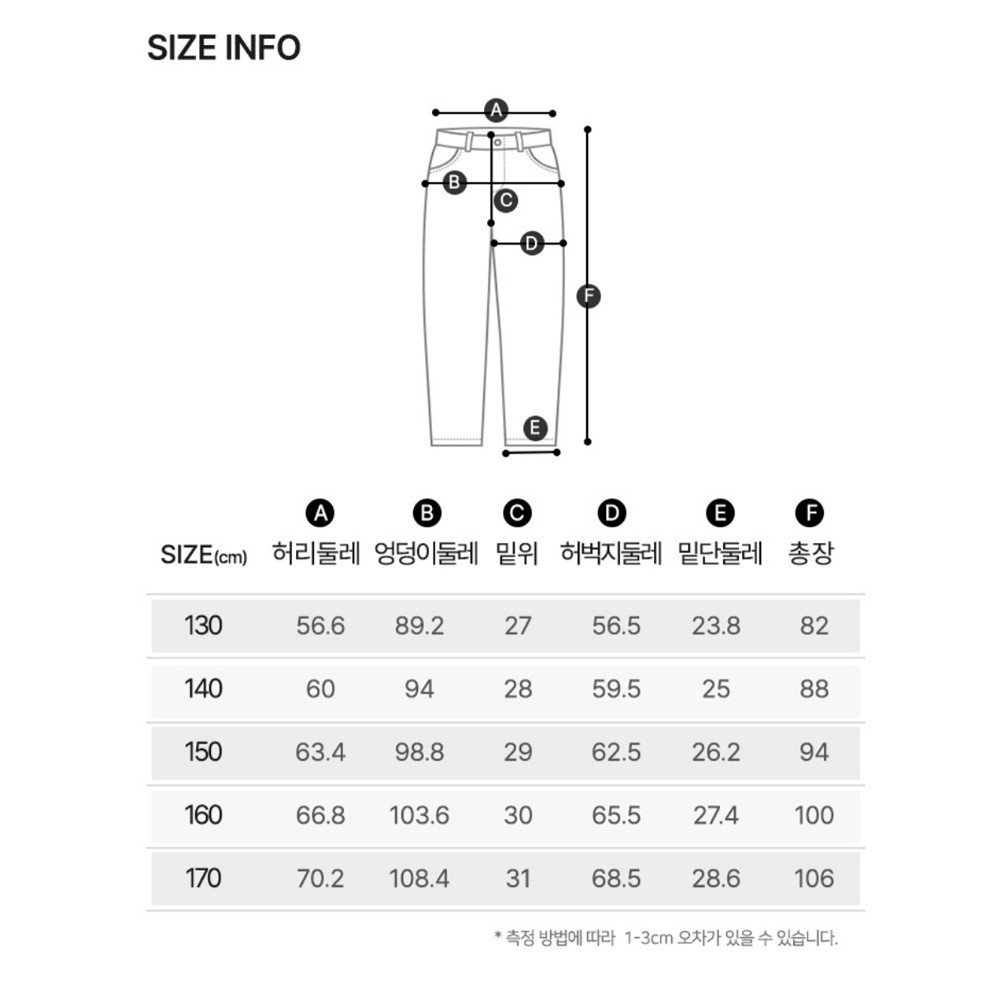 13호(150)사이즈는 신장 약150~155cm 몸무게 약40~45kg를 기준으로 체형에따라 달라질 수 있어요