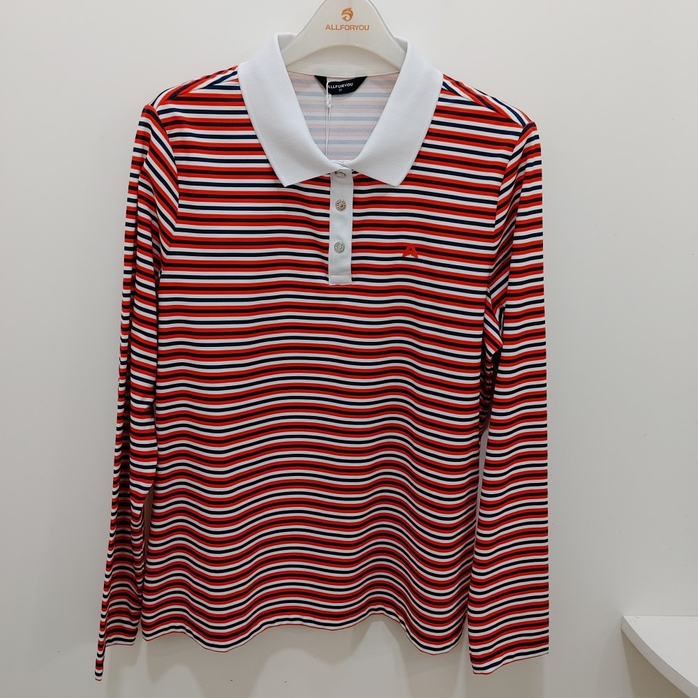 [행복한백화점][올포유]봄 여성 배색에리 스트라이프 티셔츠 (레드) AWTPO--2191