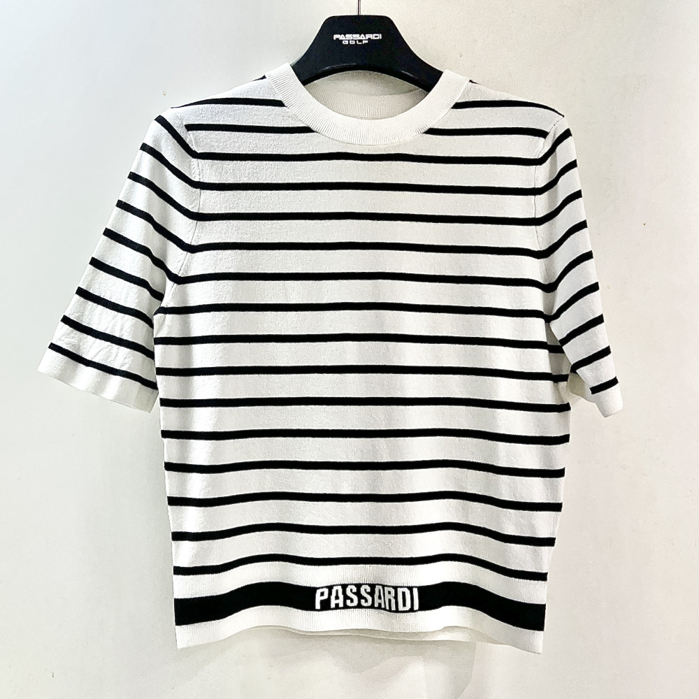 [행복한백화점][파사디]스트라이프 라운드넥 크롭 니트 티셔츠 아이보리 여성 P25SKP312S