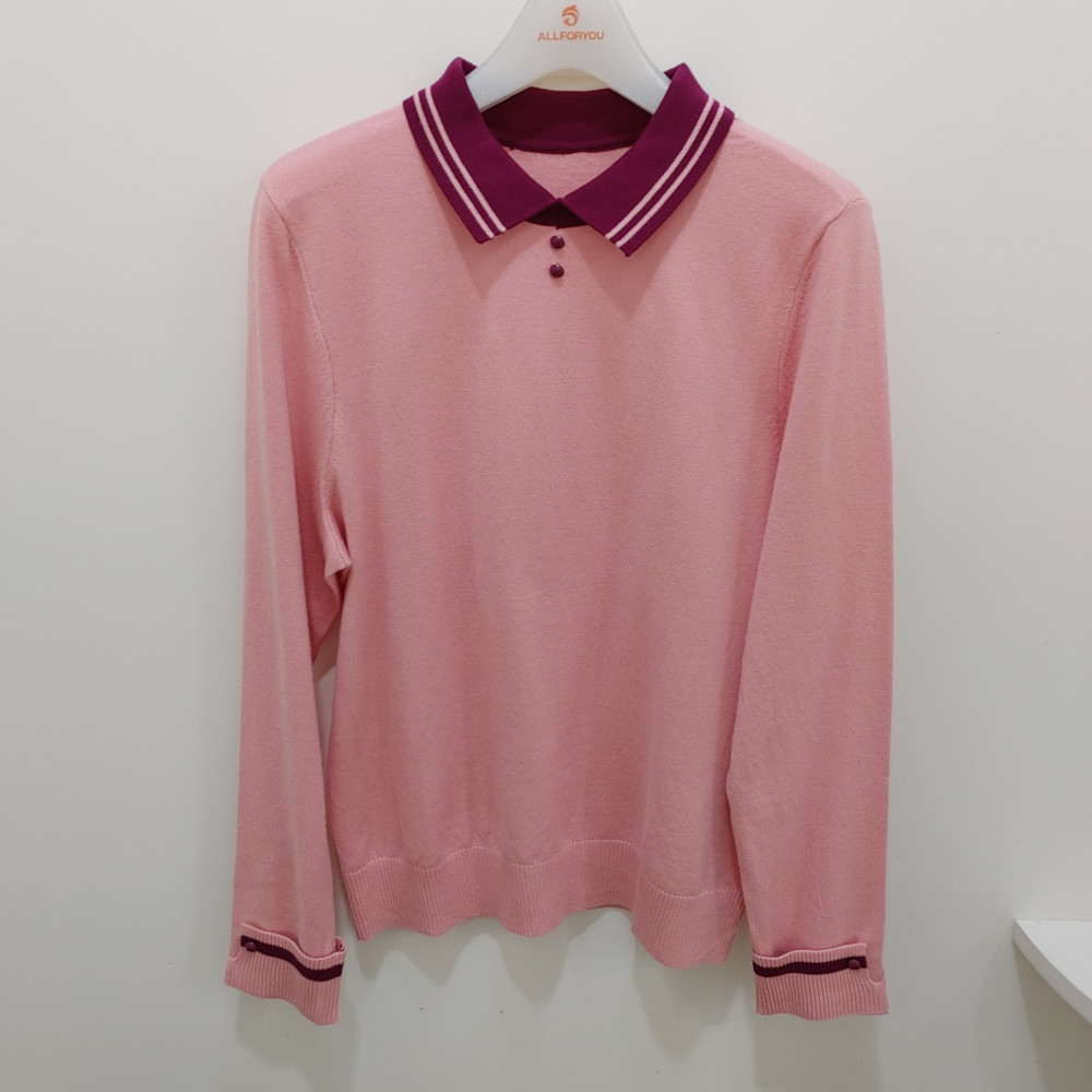 [행복한백화점][올포유]봄 여성 카라배색 포인트 스웨터(핑크,블랙) ALSPO--1211