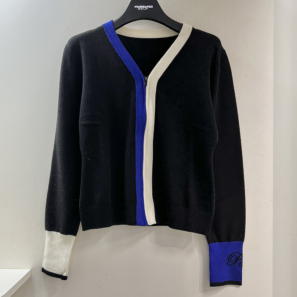[행복한백화점][파사디]배색라인 V넥 니트 집업 가디건 블랙 여성 P25SKC301S