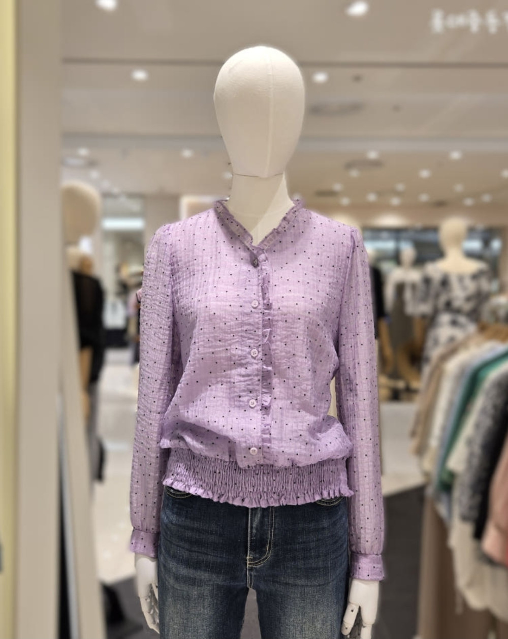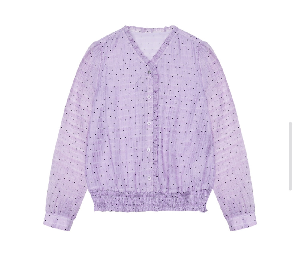 돗트패턴,쉬폰블라우스,브이넥 블라우스,영케주얼,여성,중년,데일리룩,일상룩,30대,40대