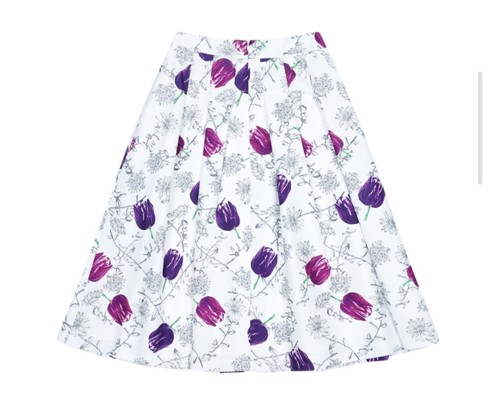 플레어 스커트,플라워패턴,우아한,여성스런,여성,스커트,영케주얼,데일리룩,일상룩,30대,40대