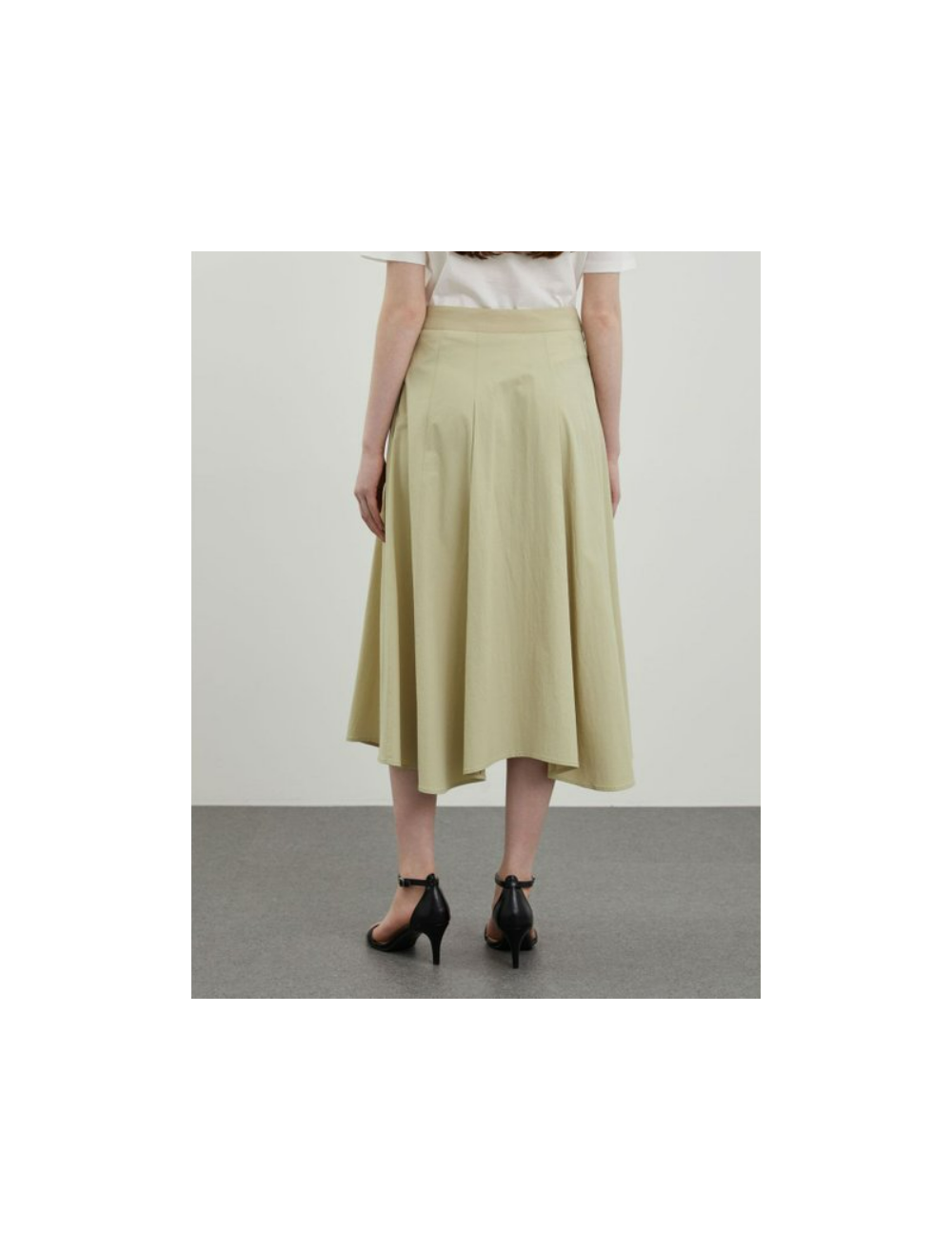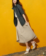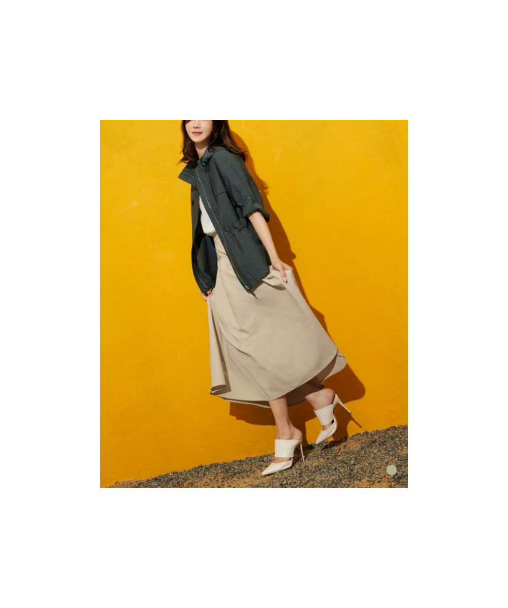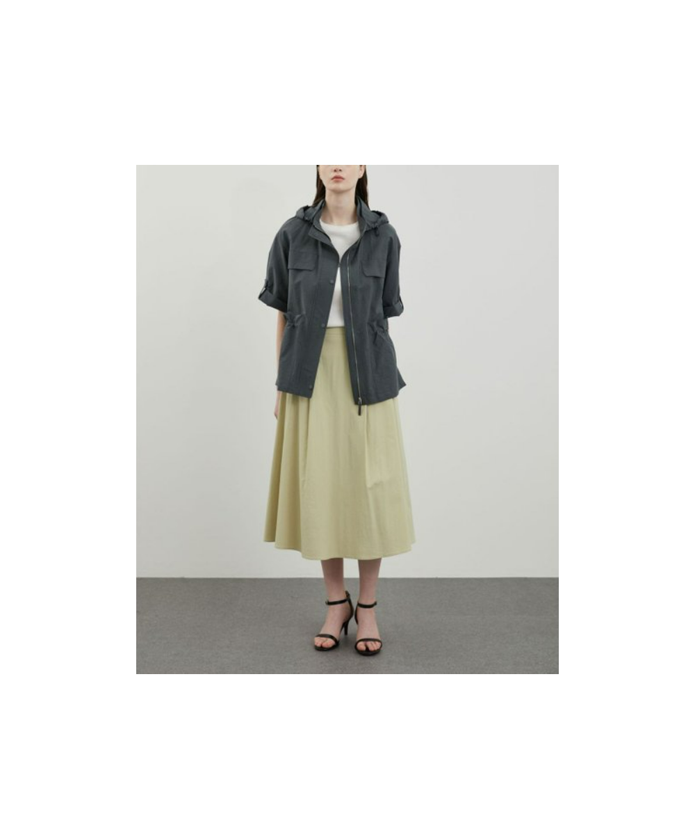 턱주름을 더하여 밑단까지 풍성하게 플레어지는 실루엣 우아한 무드를 자아내는