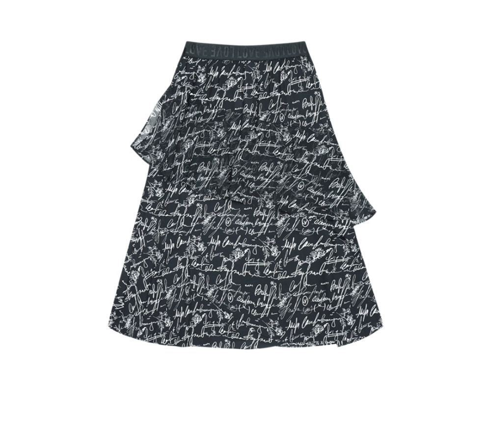 쉬폰치마,스커트,레터링,러블리한,여성스런,여성,중년,영케주얼,일상룩,데일리룩,30대,40대