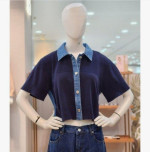 데님배색니트 가디건,니트가디건,짧은가디건,여성,중년,영케주얼,일상룩,데일리룩,30대,40대