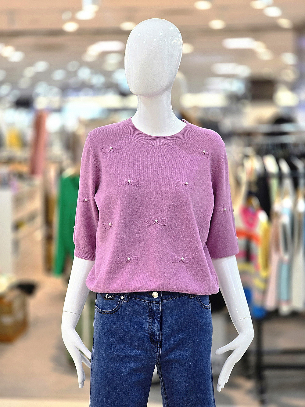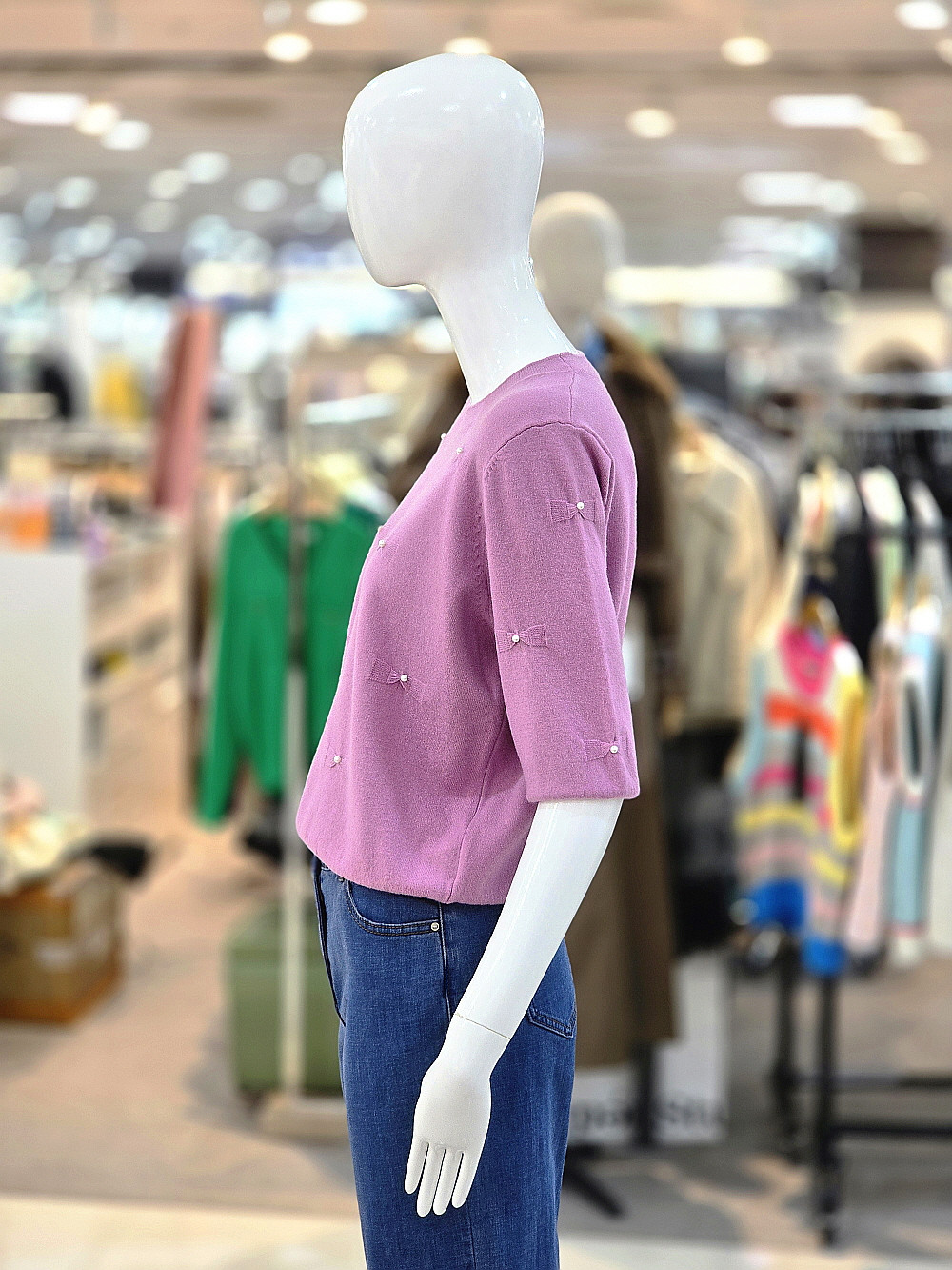 은은한 컬러에 작은 리본과 진주 장식이 더해져 여성스럽고 세련된 분위기를 연출합니다.